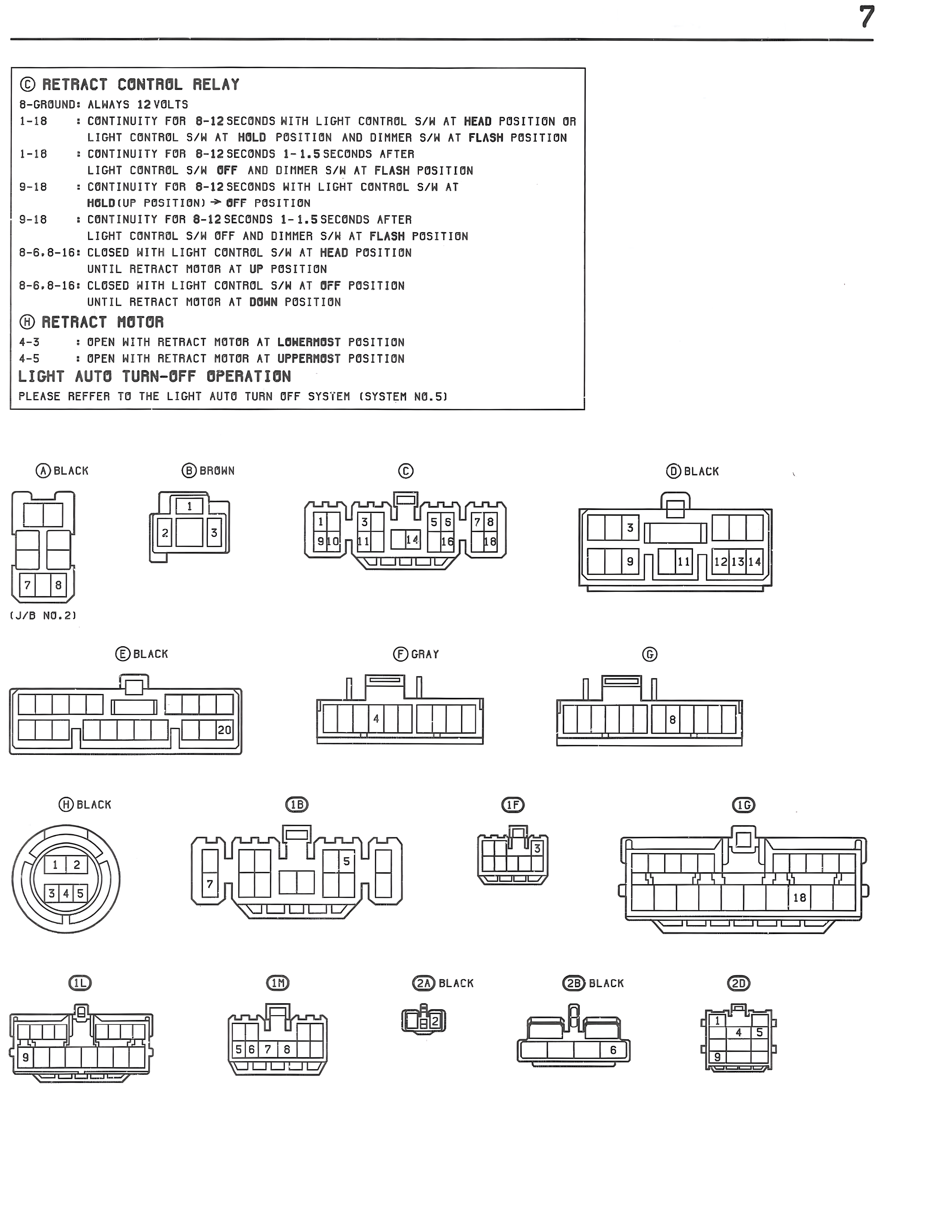 8-6,8-16: CLOSED WITH LIGHT CONTROL S/W AT HEAD POSITION UNTIL RETRACT MOTOR AT UP POSITION