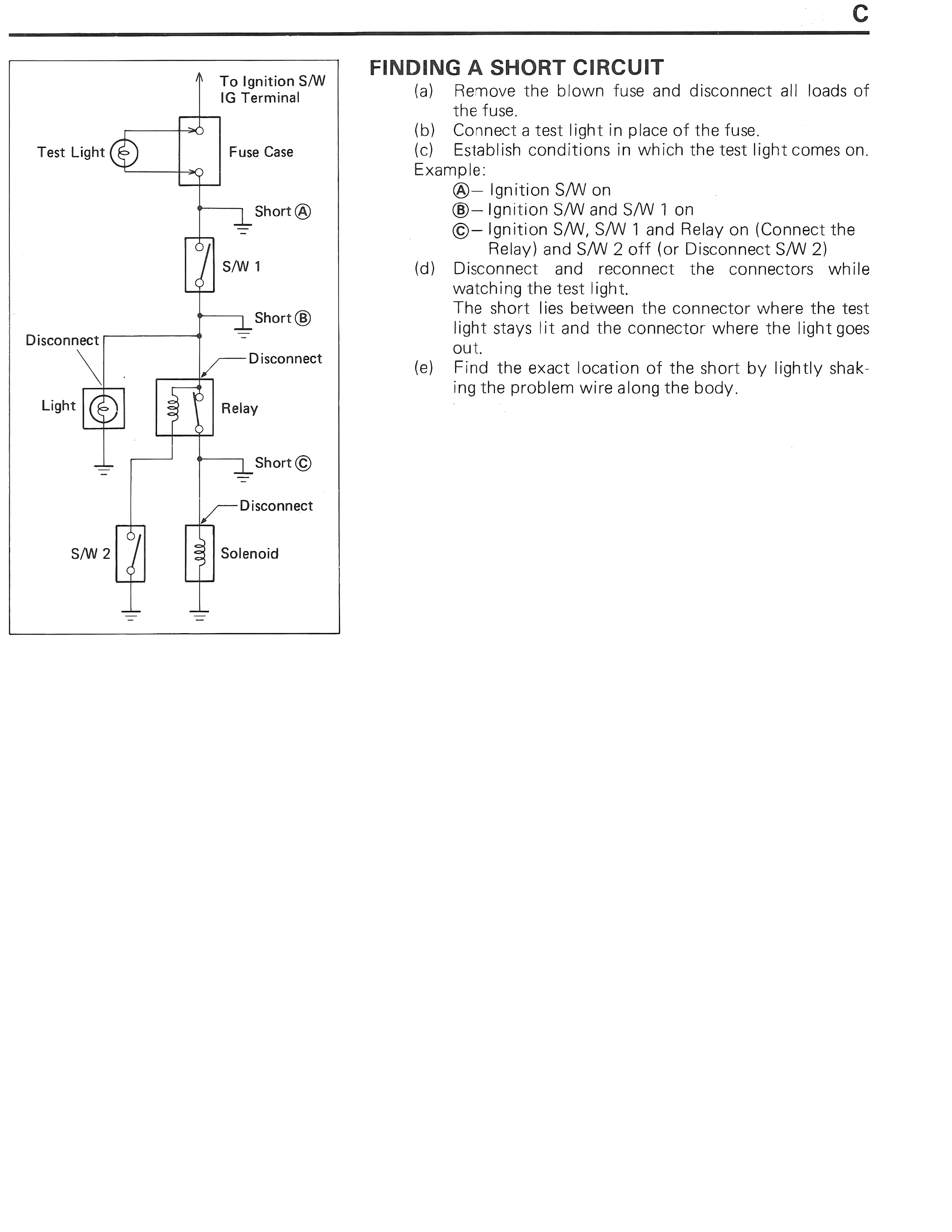 (e) Find the exact location of the short by lightly shaking the problem wire along the body.