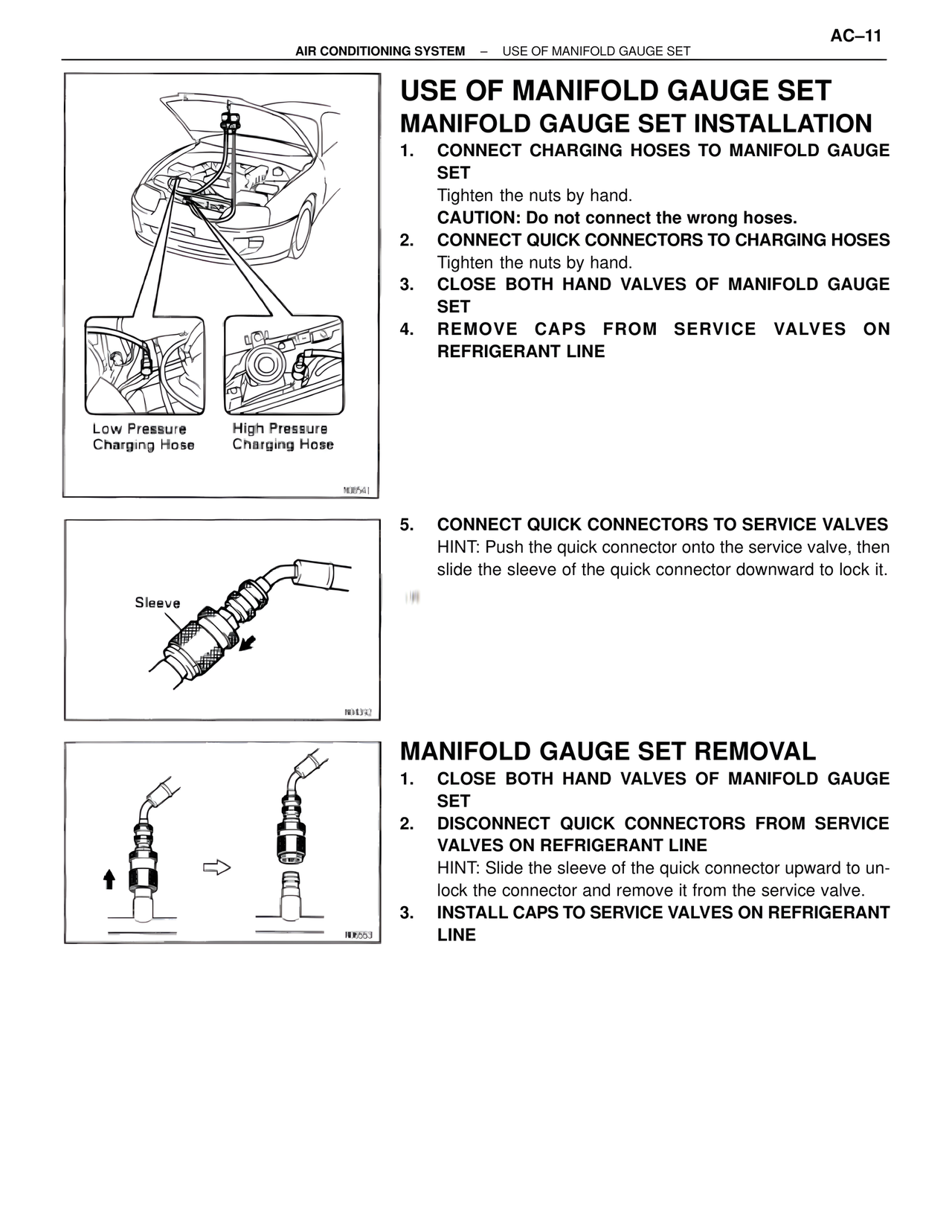 1. CLOSE BOTH HAND VALVES OF MANIFOLD GAUGE SET