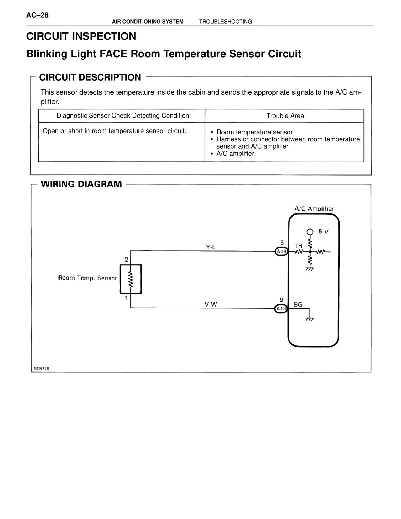 • Harness or connector between room temperature sensor and A/C amplifier