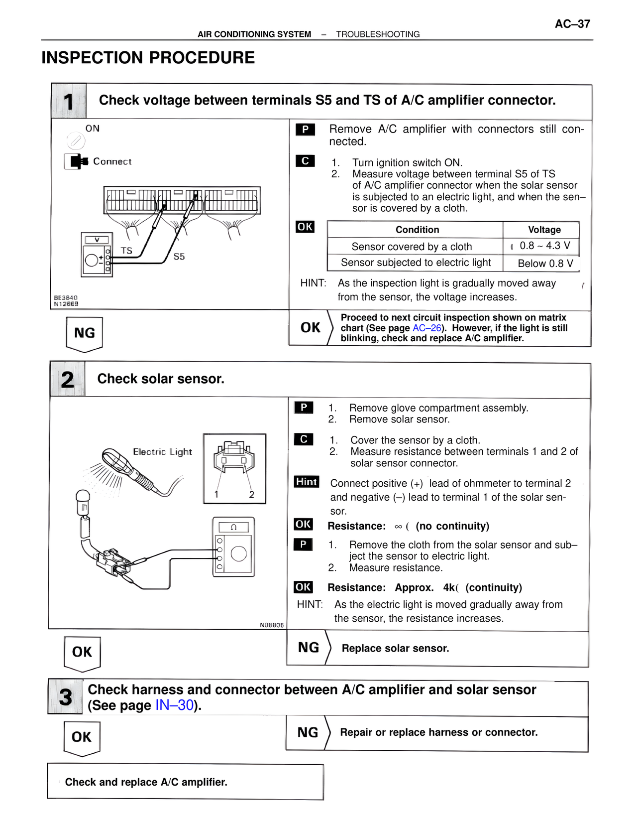 OK Proceed to next circuit inspection shown on matrix chart (See page AC–26). However, if the light is still blinking, check and replace A/C amplifier.