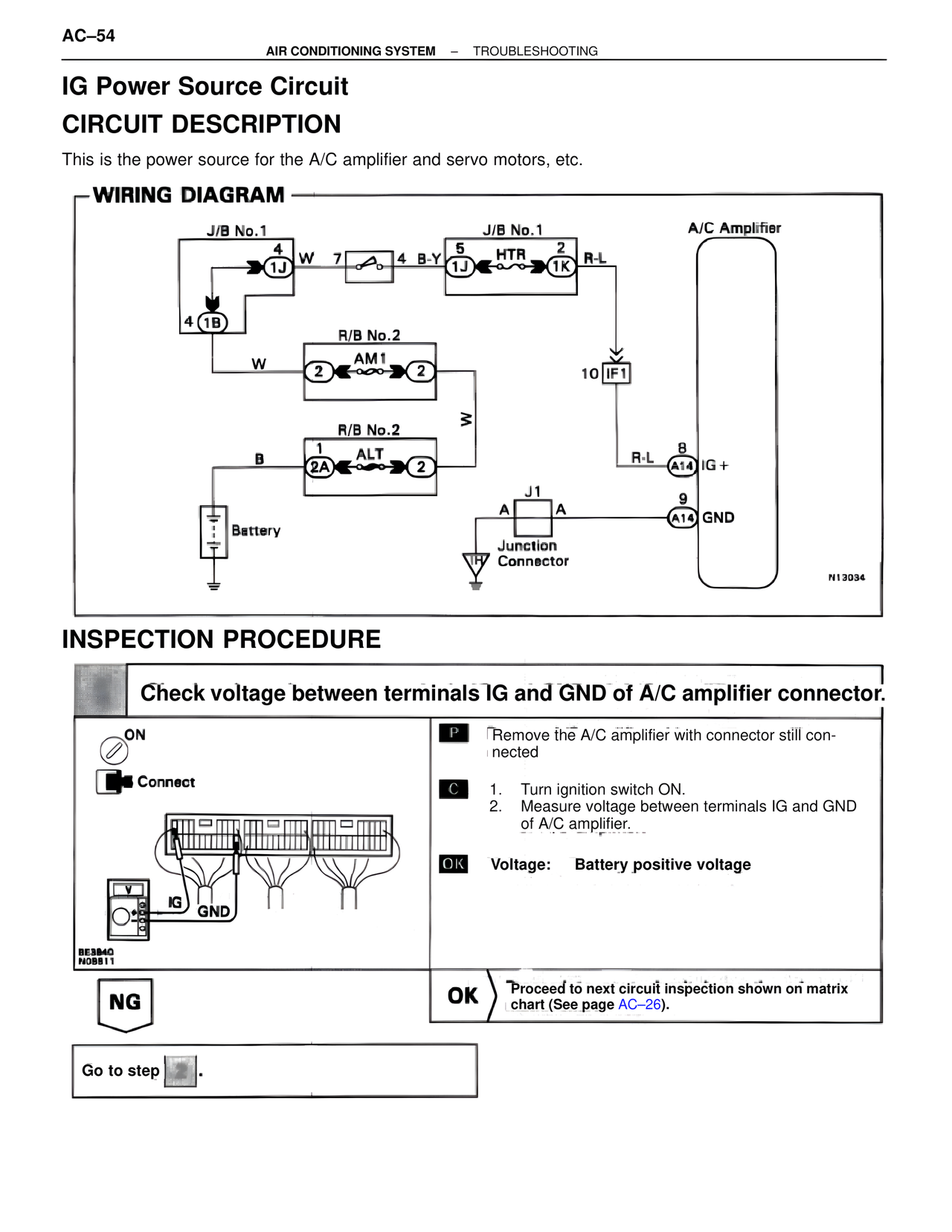 2. Measure voltage between terminals IG and GND of A/C amplifier.