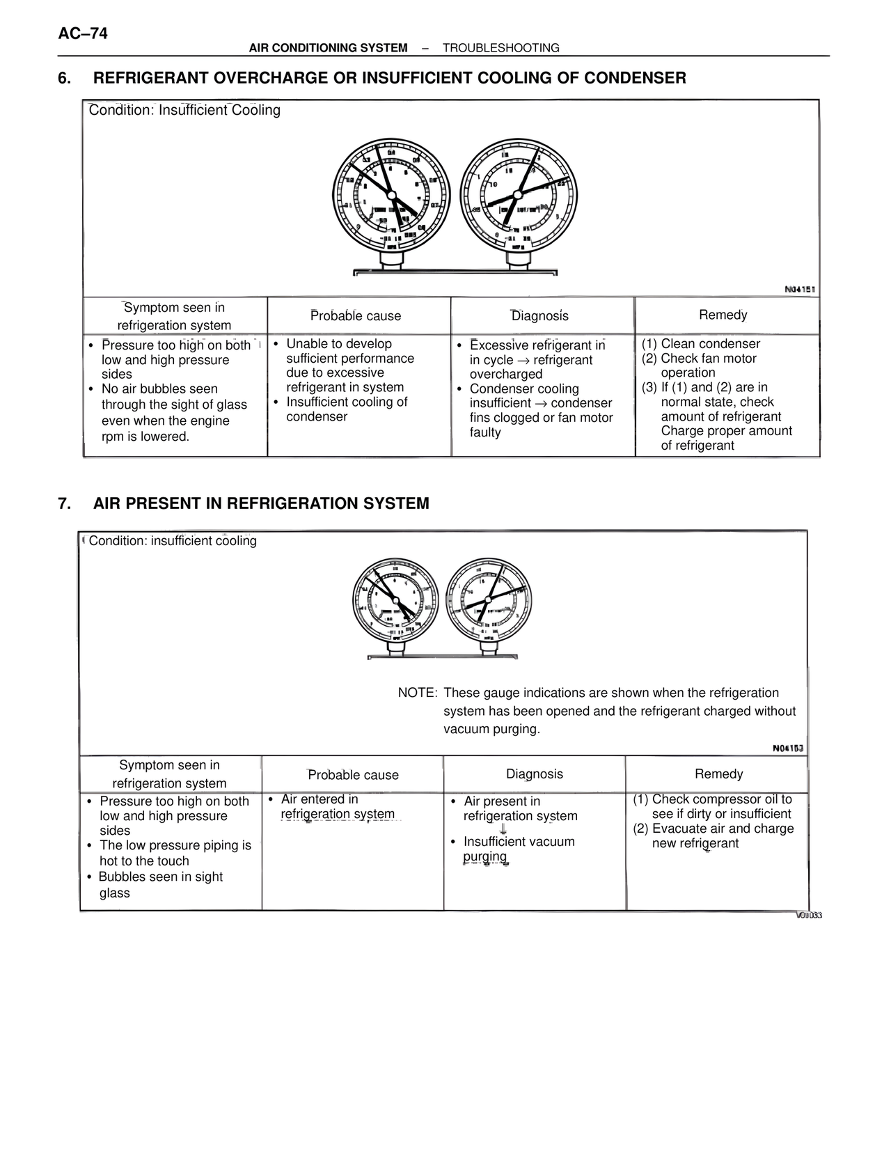 6. REFRIGERANT OVERCHARGE OR INSUFFICIENT COOLING OF CONDENSER