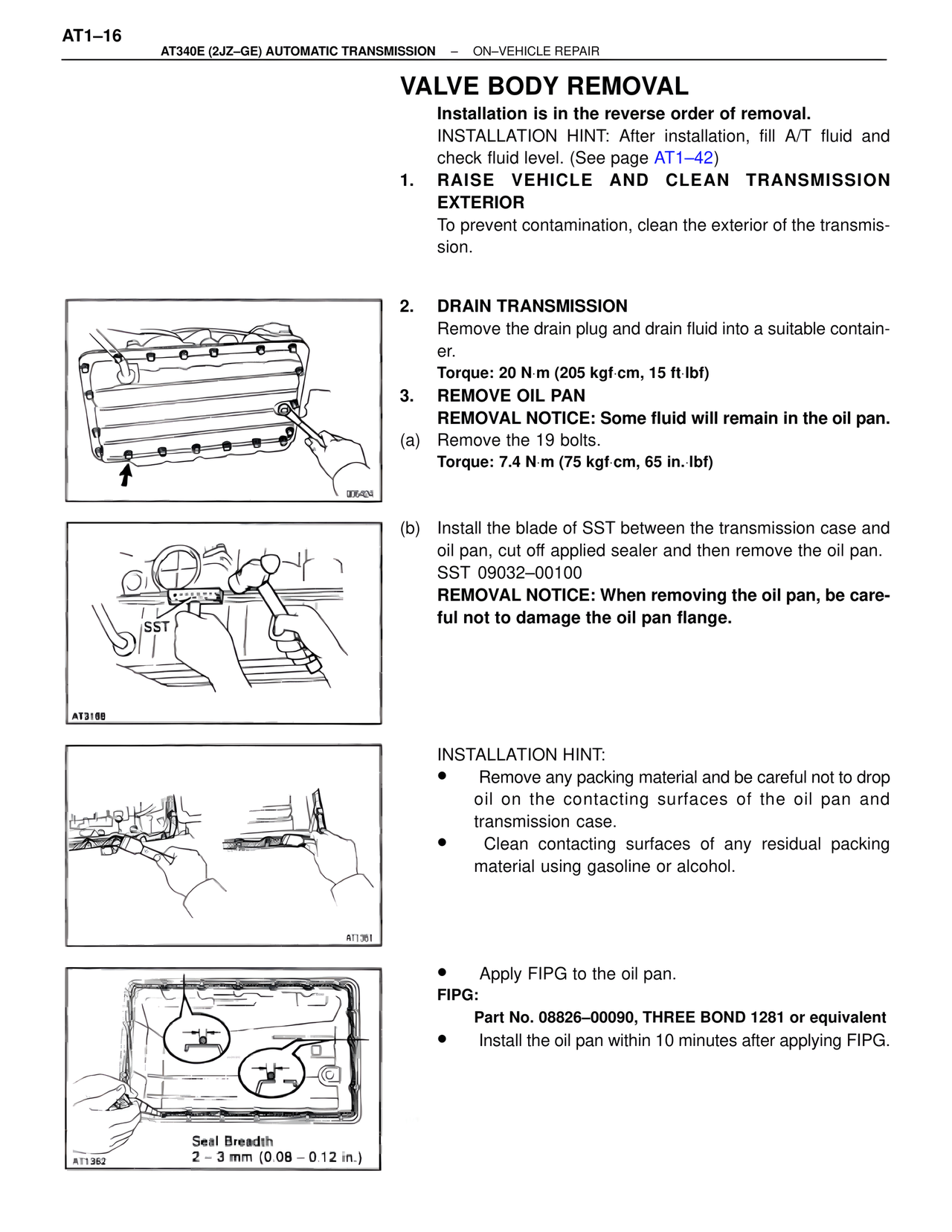 AT340E (2JZ–GE) AUTOMATIC TRANSMISSION – ON–VEHICLE REPAIR