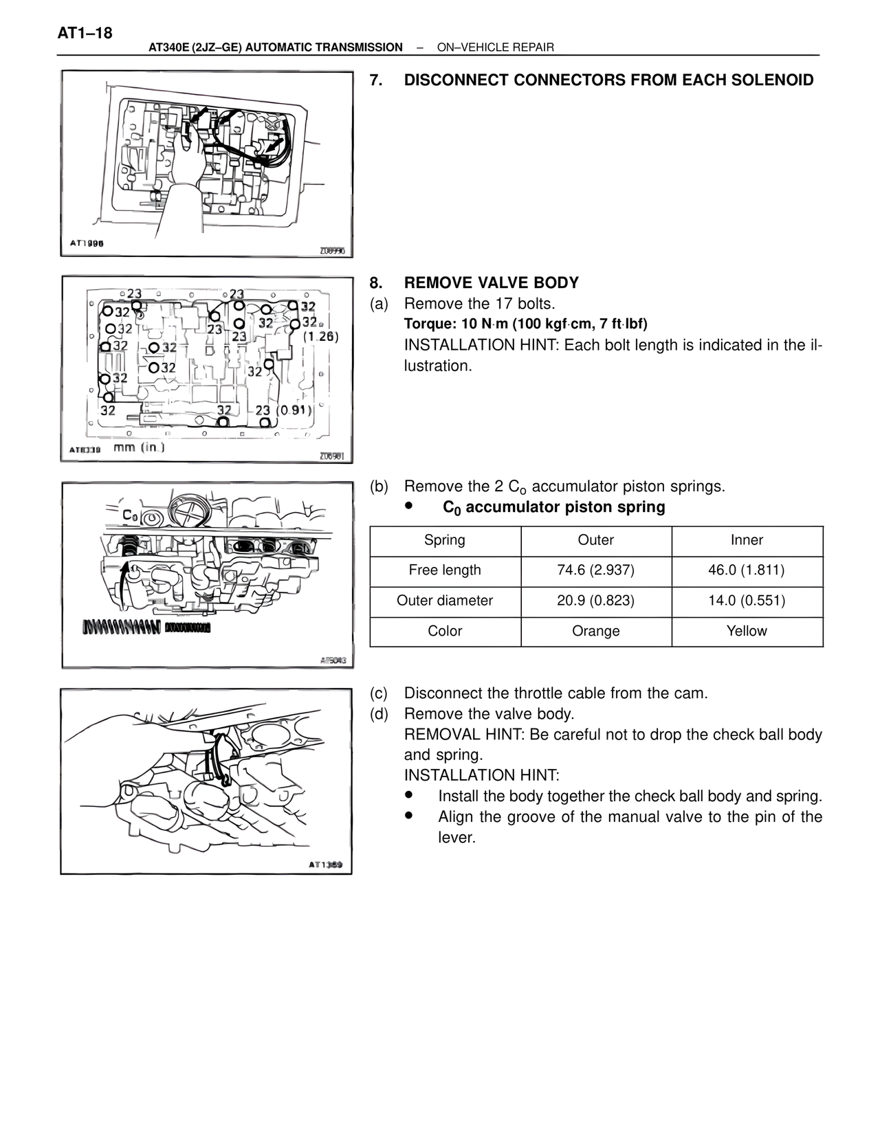 AT340E (2JZ–GE) AUTOMATIC TRANSMISSION – ON–VEHICLE REPAIR