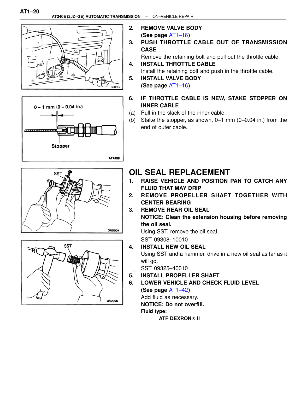 AT340E (2JZ–GE) AUTOMATIC TRANSMISSION – ON–VEHICLE REPAIR