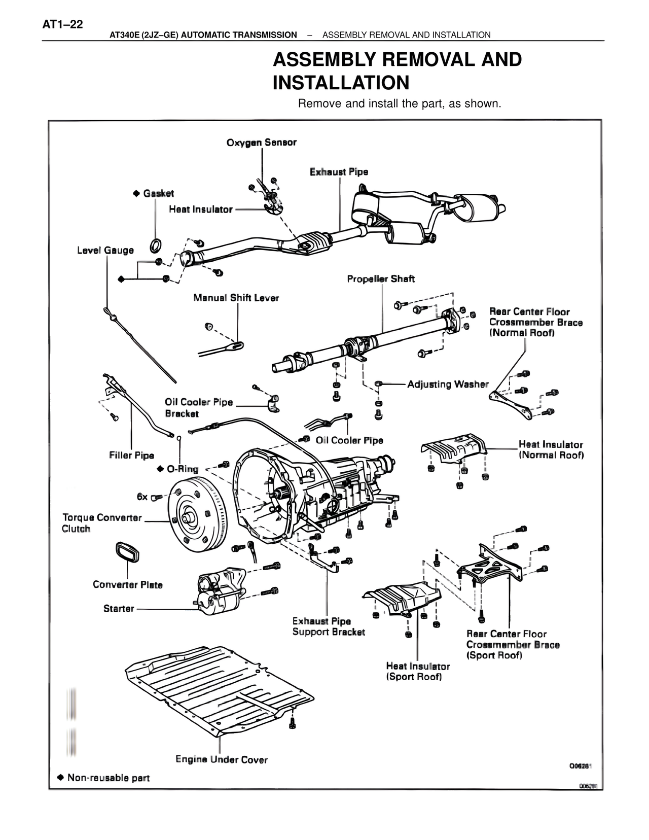 AT340E (2JZ–GE) AUTOMATIC TRANSMISSION – ASSEMBLY REMOVAL AND INSTALLATION