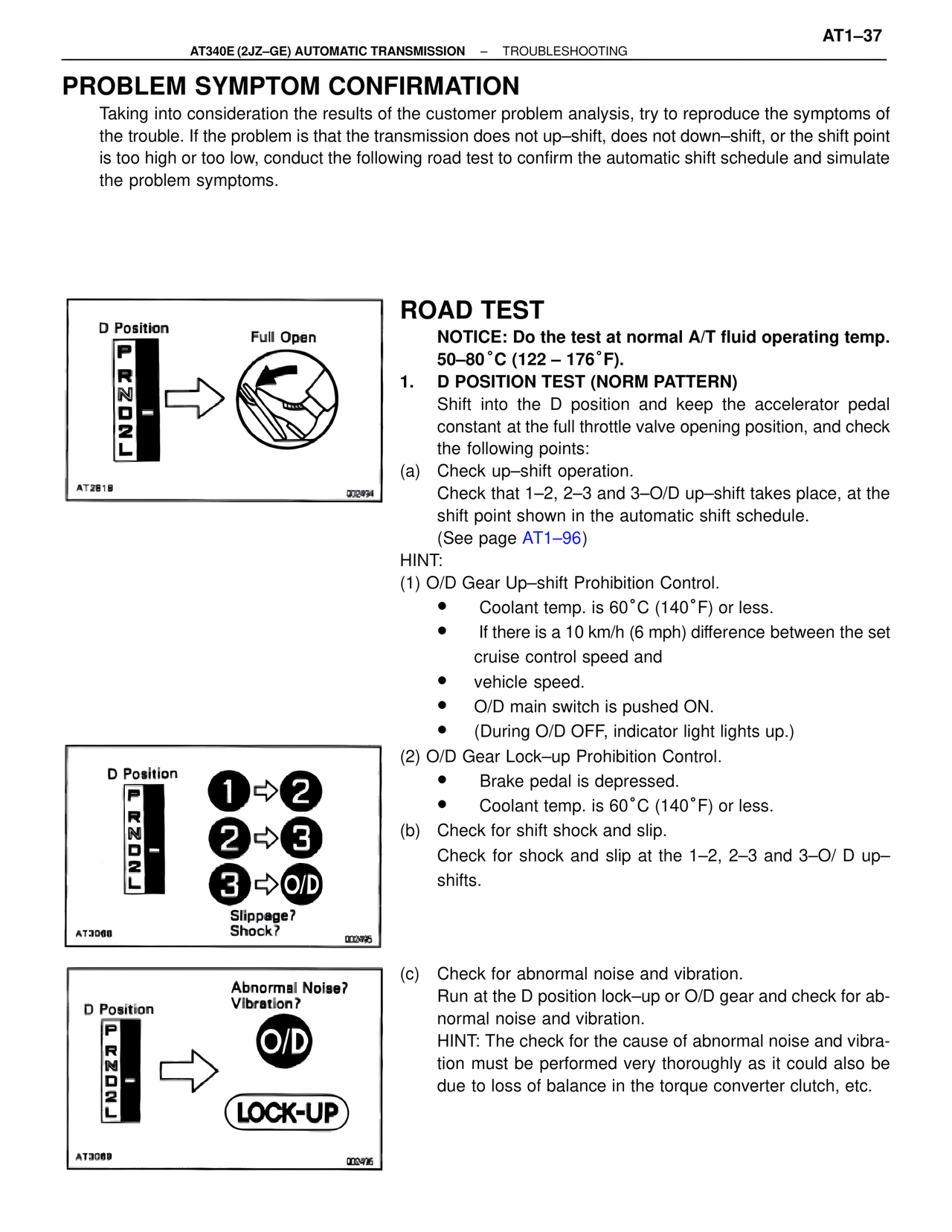 Run at the D position lock–up or O/D gear and check for ab-
