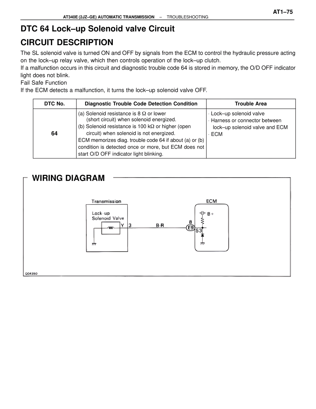 If the ECM detects a malfunction, it turns the lock–up solenoid valve OFF.