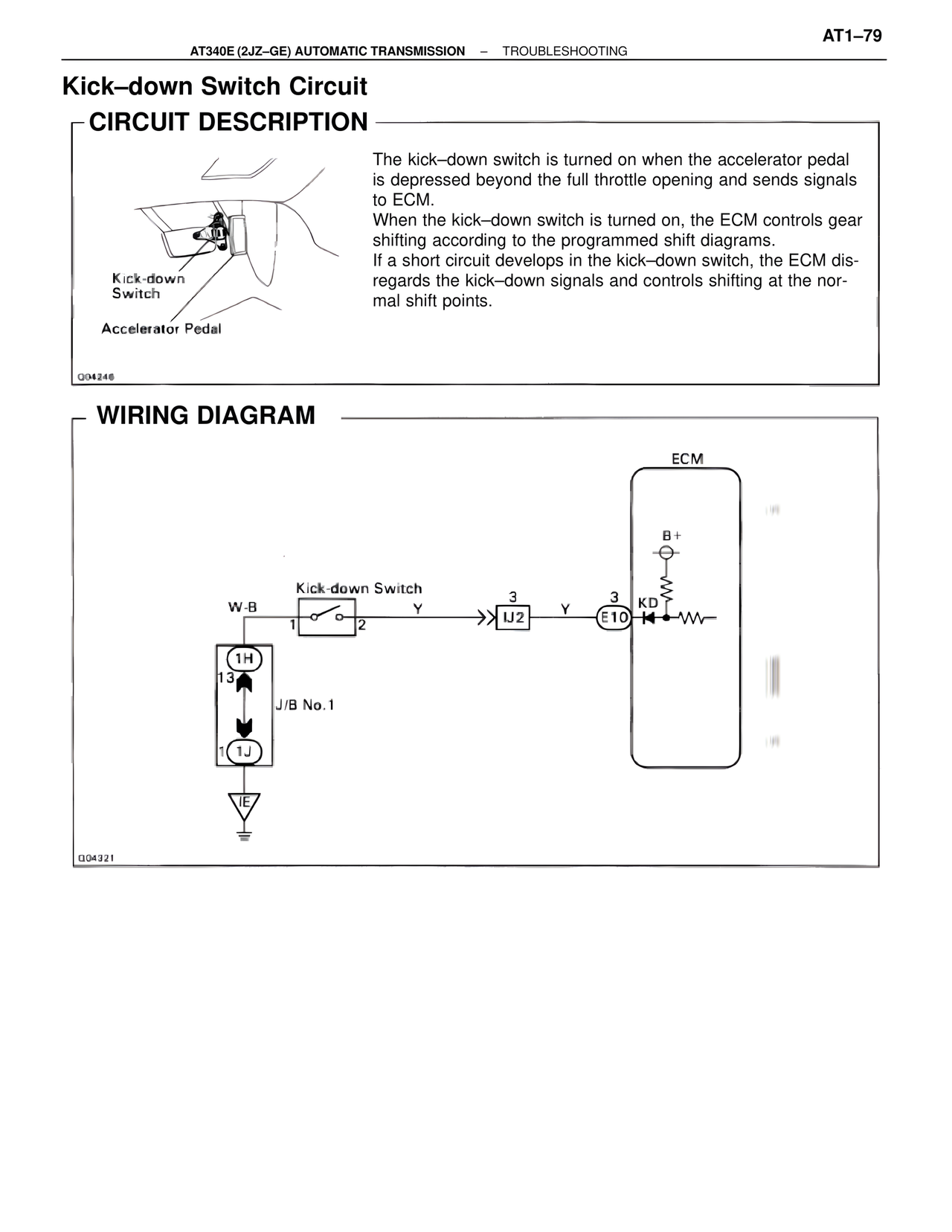 If a short circuit develops in the kick–down switch, the ECM dis-