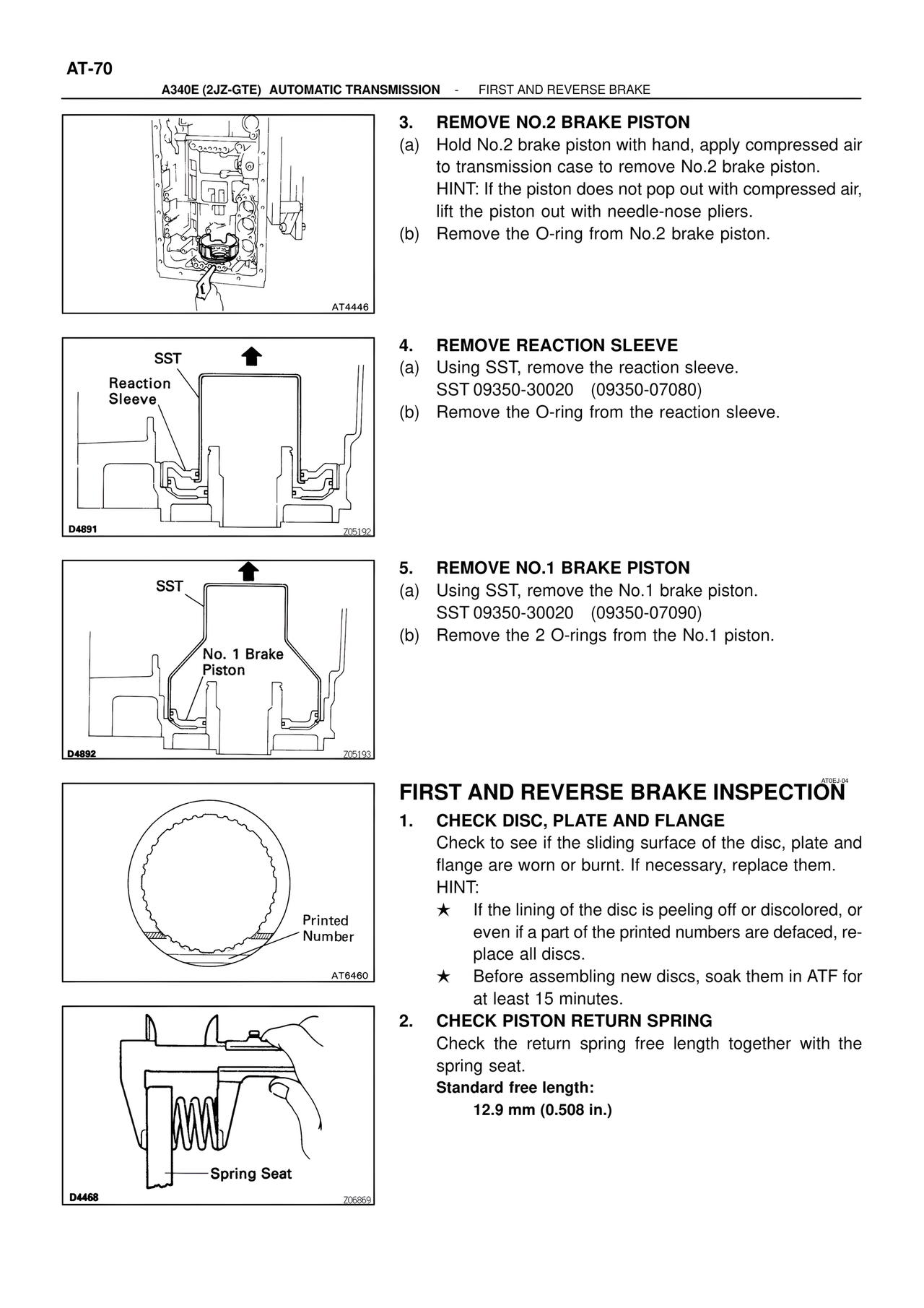 ★ Before assembling new discs, soak them in ATF for at least 15 minutes.