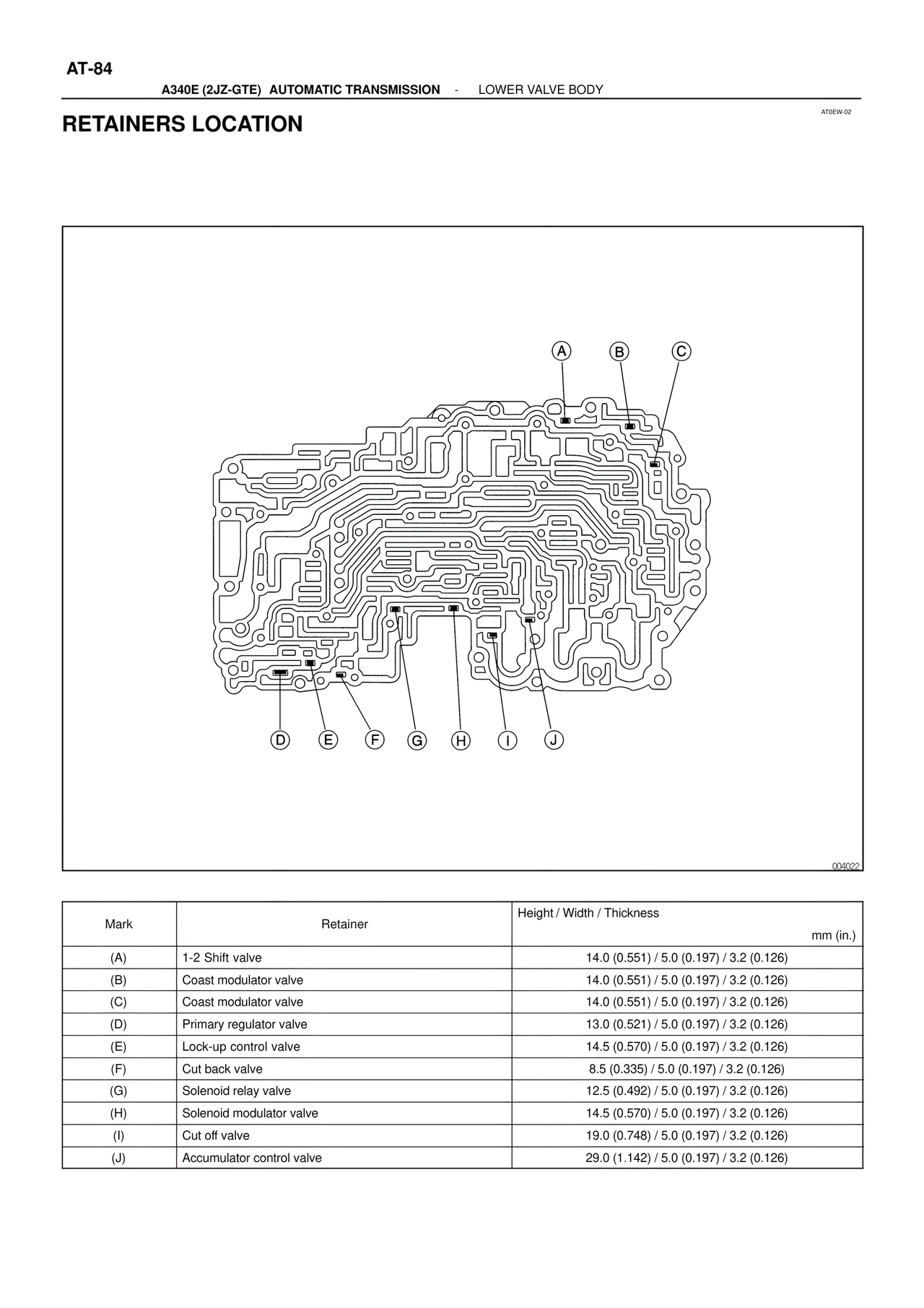 (E) Lock-up control valve 14.5 (0.570) / 5.0 (0.197) / 3.2 (0.126)