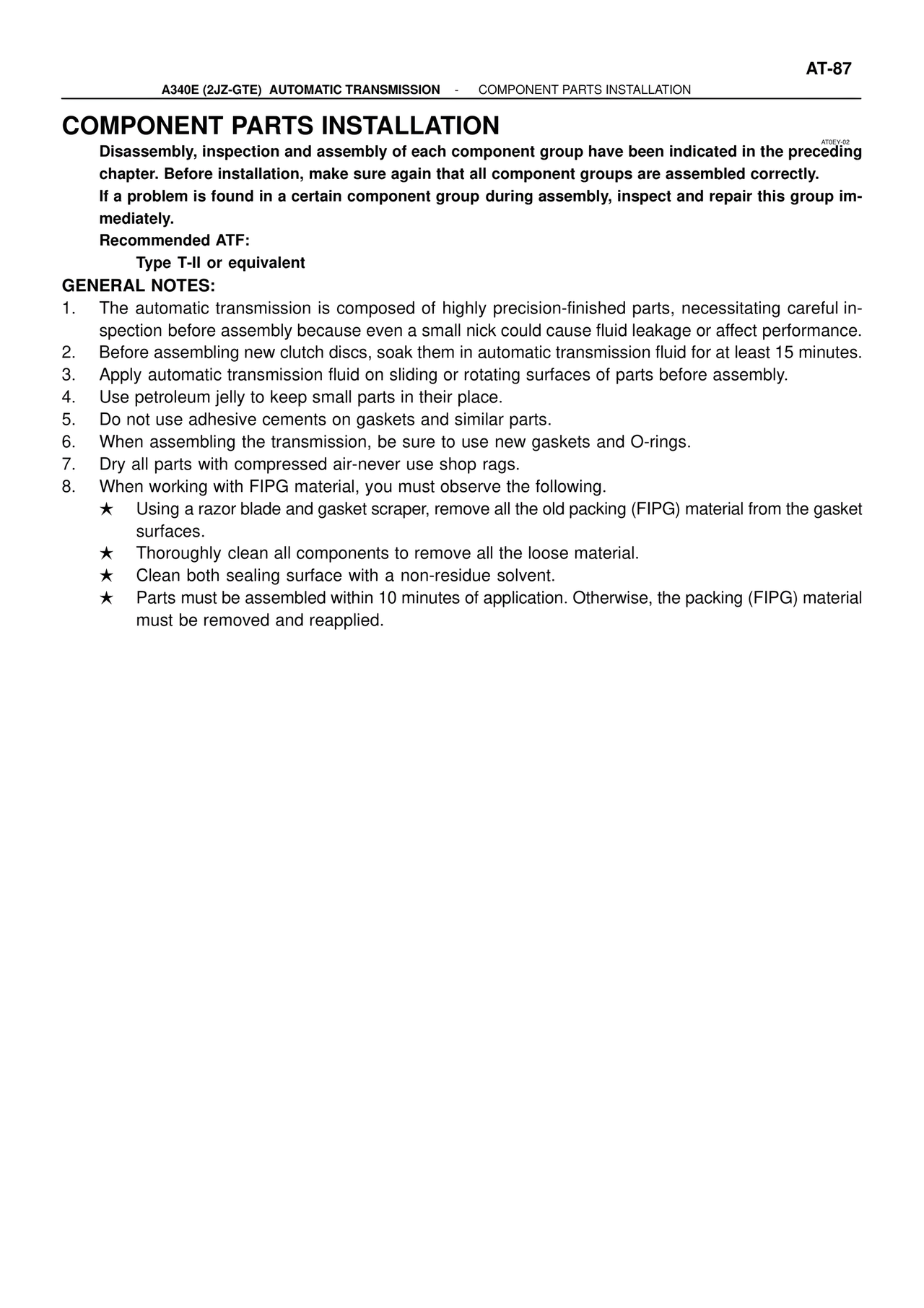 A340E (2JZ-GTE) AUTOMATIC TRANSMISSION - COMPONENT PARTS INSTALLATION