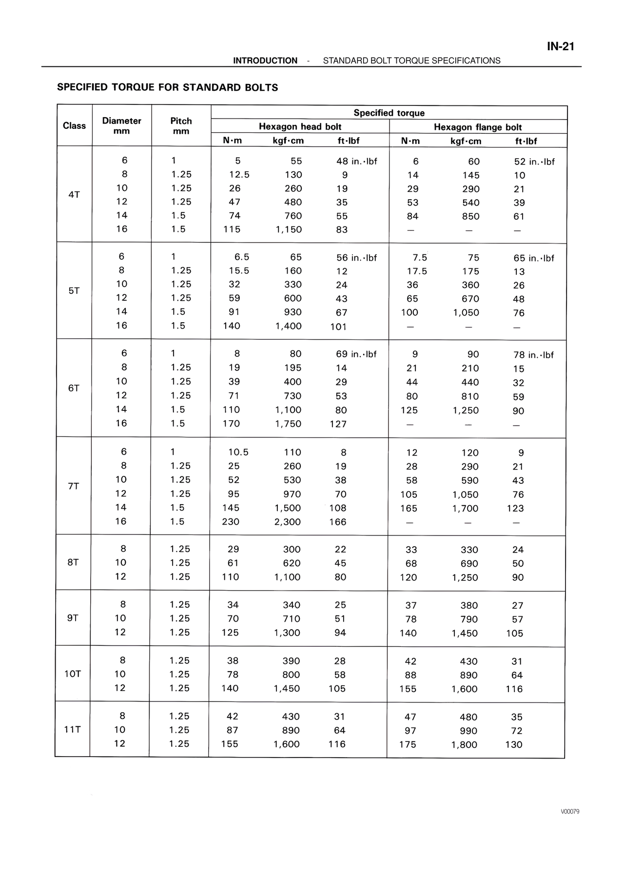 INTRODUCTION - STANDARD BOLT TORQUE SPECIFICATIONS