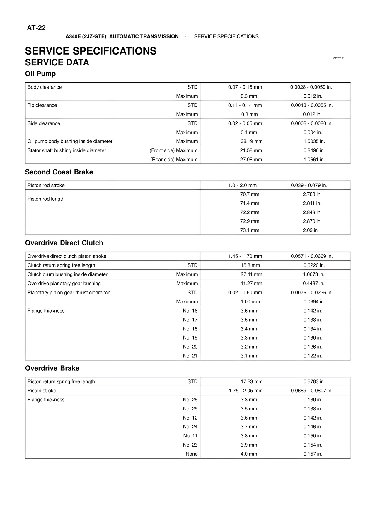 A340E (2JZ-GTE) AUTOMATIC TRANSMISSION - SERVICE SPECIFICATIONS