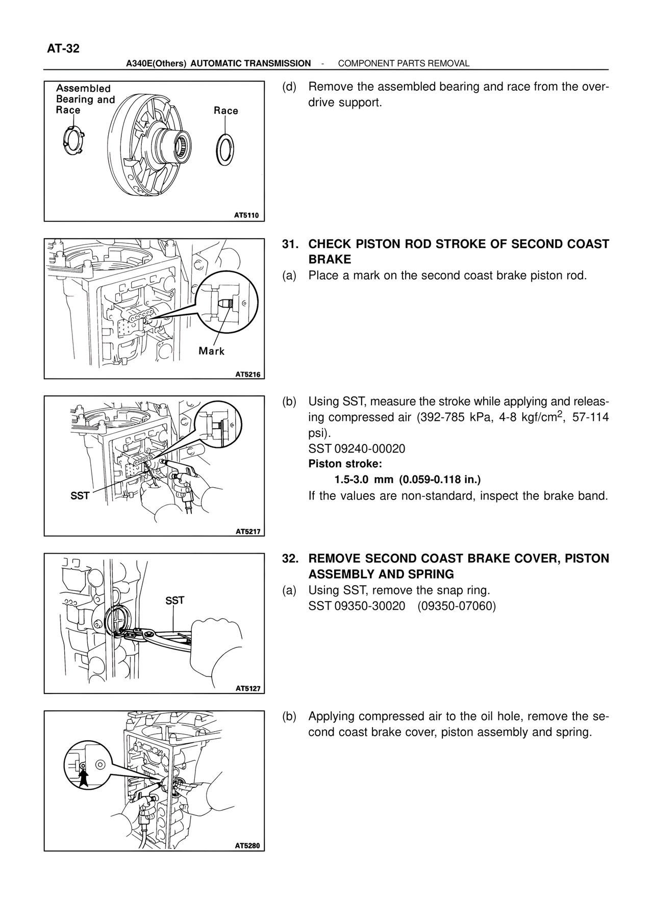 32. REMOVE SECOND COAST BRAKE COVER, PISTON