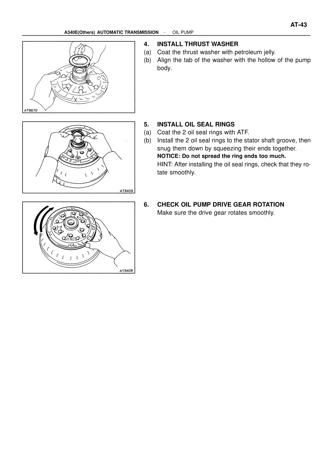 HINT: After installing the oil seal rings, check that they rotate smoothly.