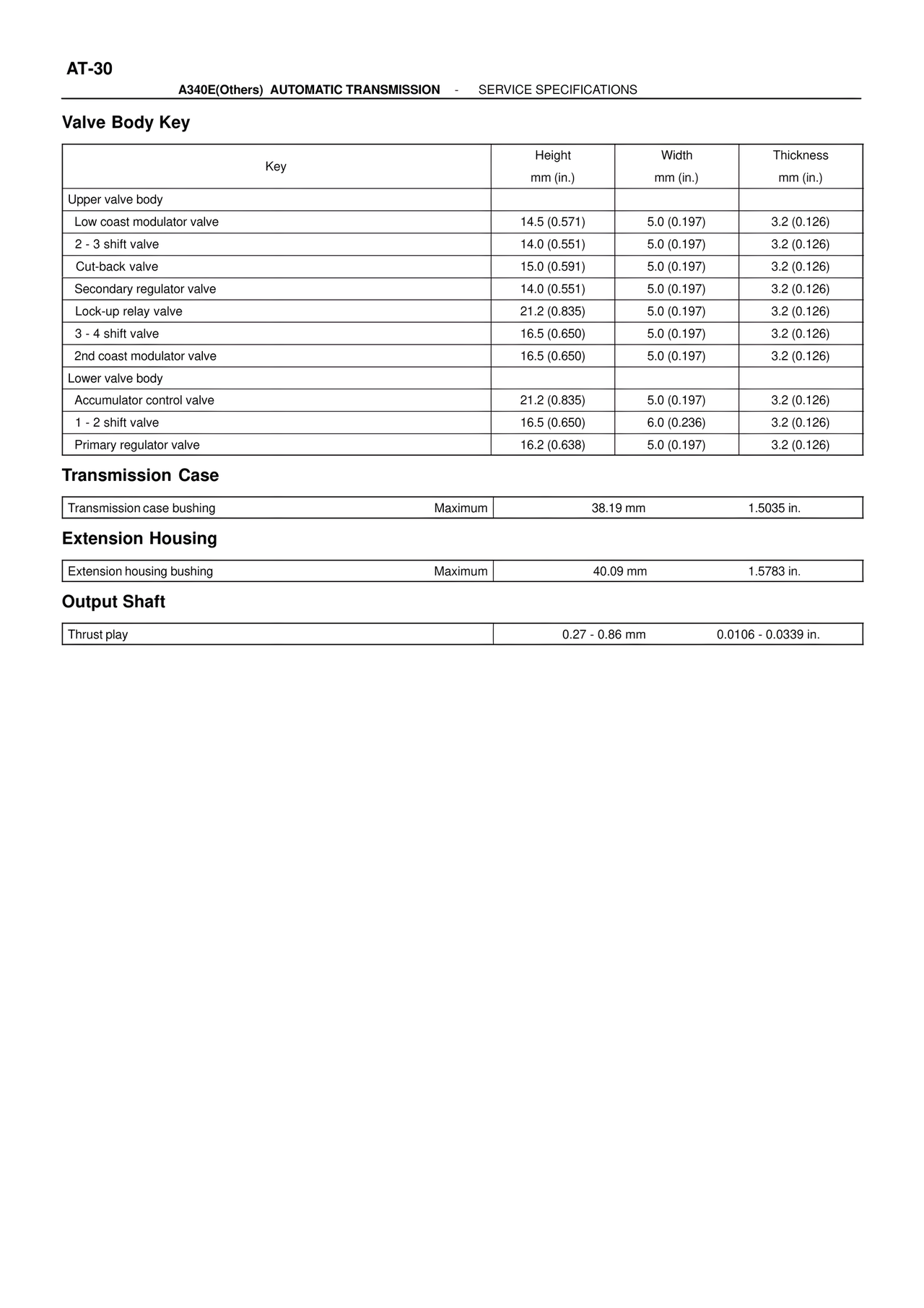 A340E(Others) AUTOMATIC TRANSMISSION - SERVICE SPECIFICATIONS