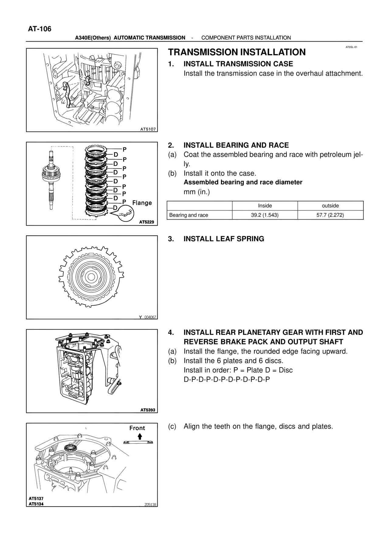 A340E(Others) AUTOMATIC TRANSMISSION - COMPONENT PARTS INSTALLATION