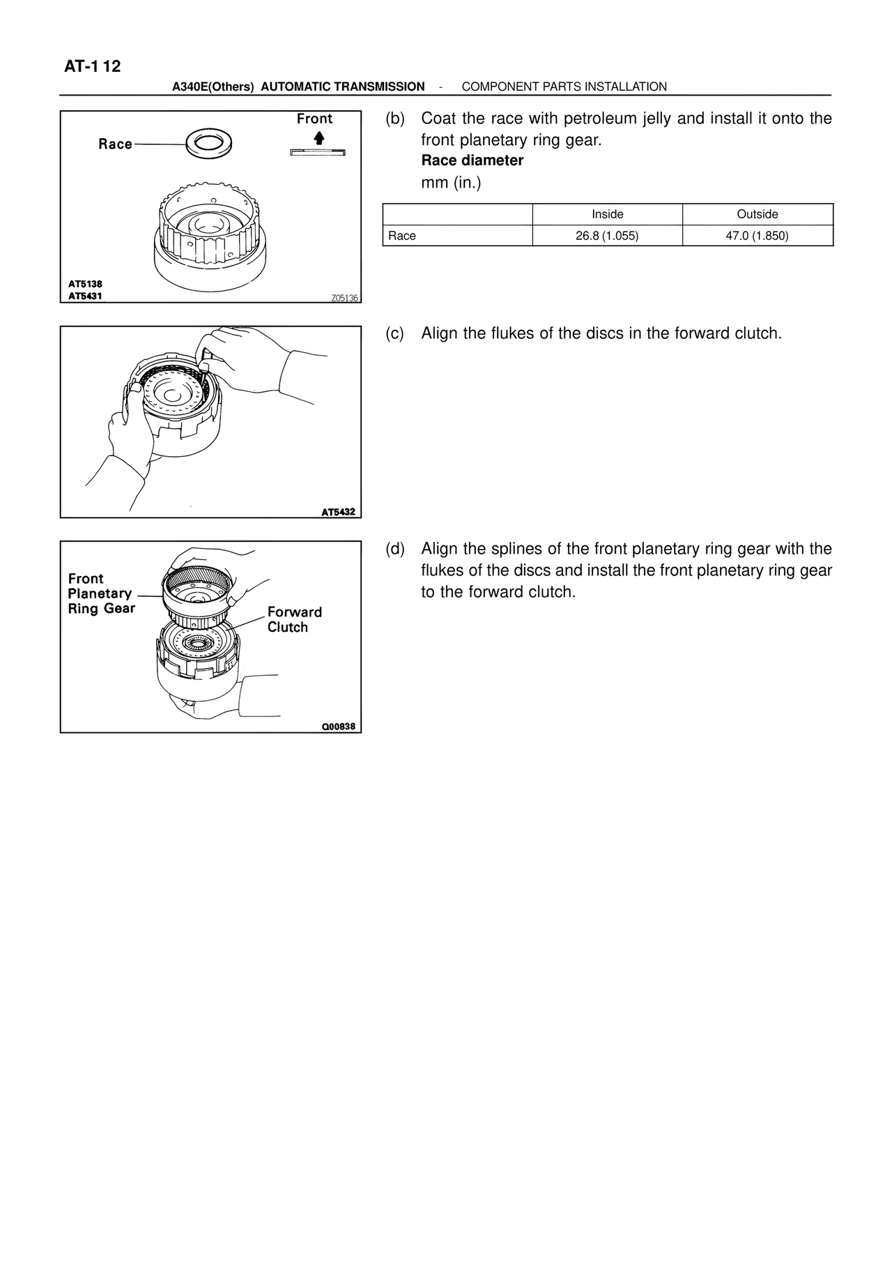 A340E(Others) AUTOMATIC TRANSMISSION - COMPONENT PARTS INSTALLATION