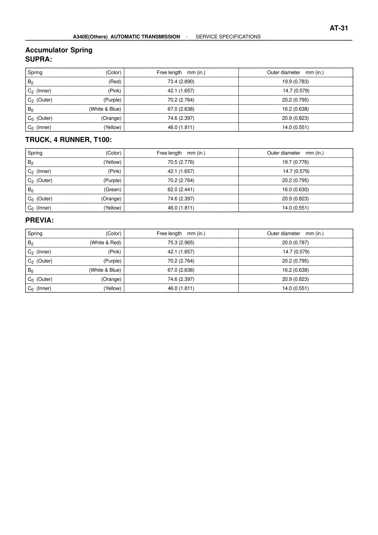 A340E(Others) AUTOMATIC TRANSMISSION - SERVICE SPECIFICATIONS