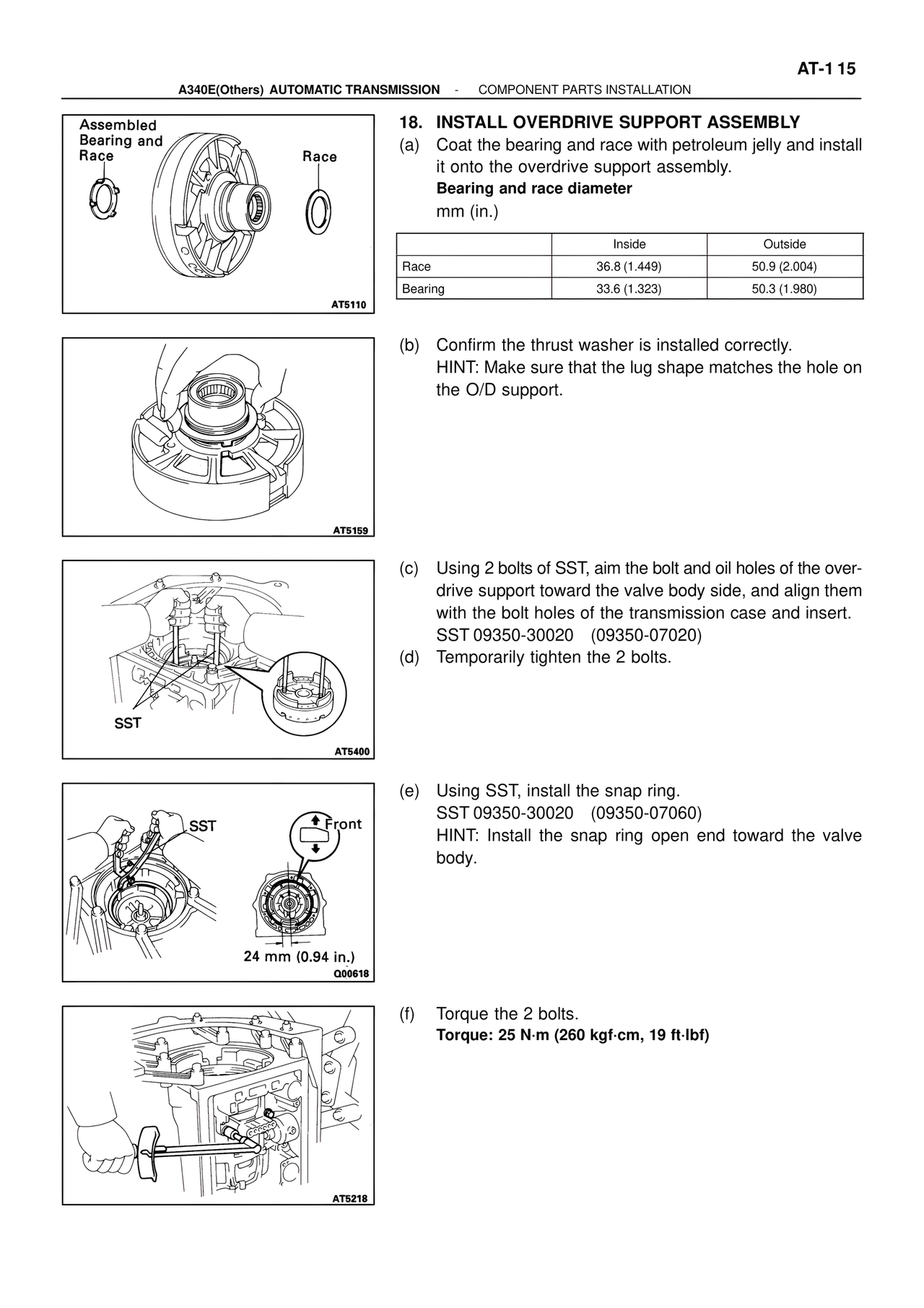 A340E(Others) AUTOMATIC TRANSMISSION - COMPONENT PARTS INSTALLATION