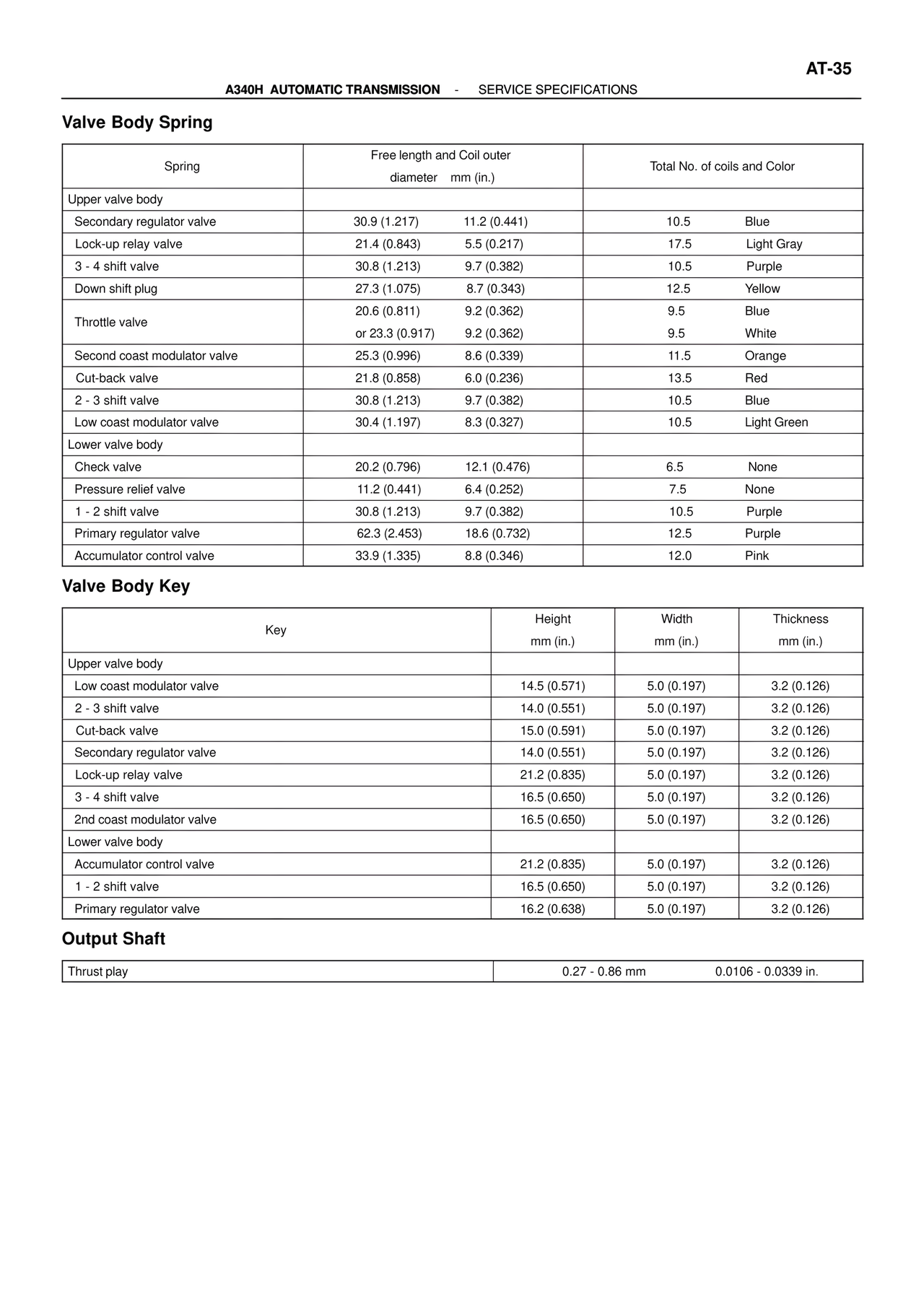 A340H AUTOMATIC TRANSMISSION - SERVICE SPECIFICATIONS
