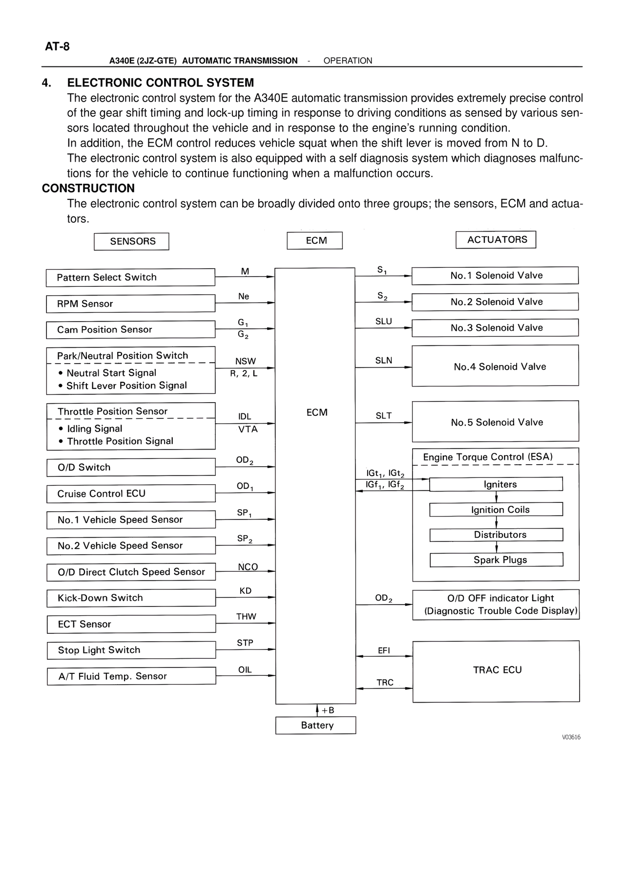 The electronic control system for the A340E automatic transmission provides extremely precise control