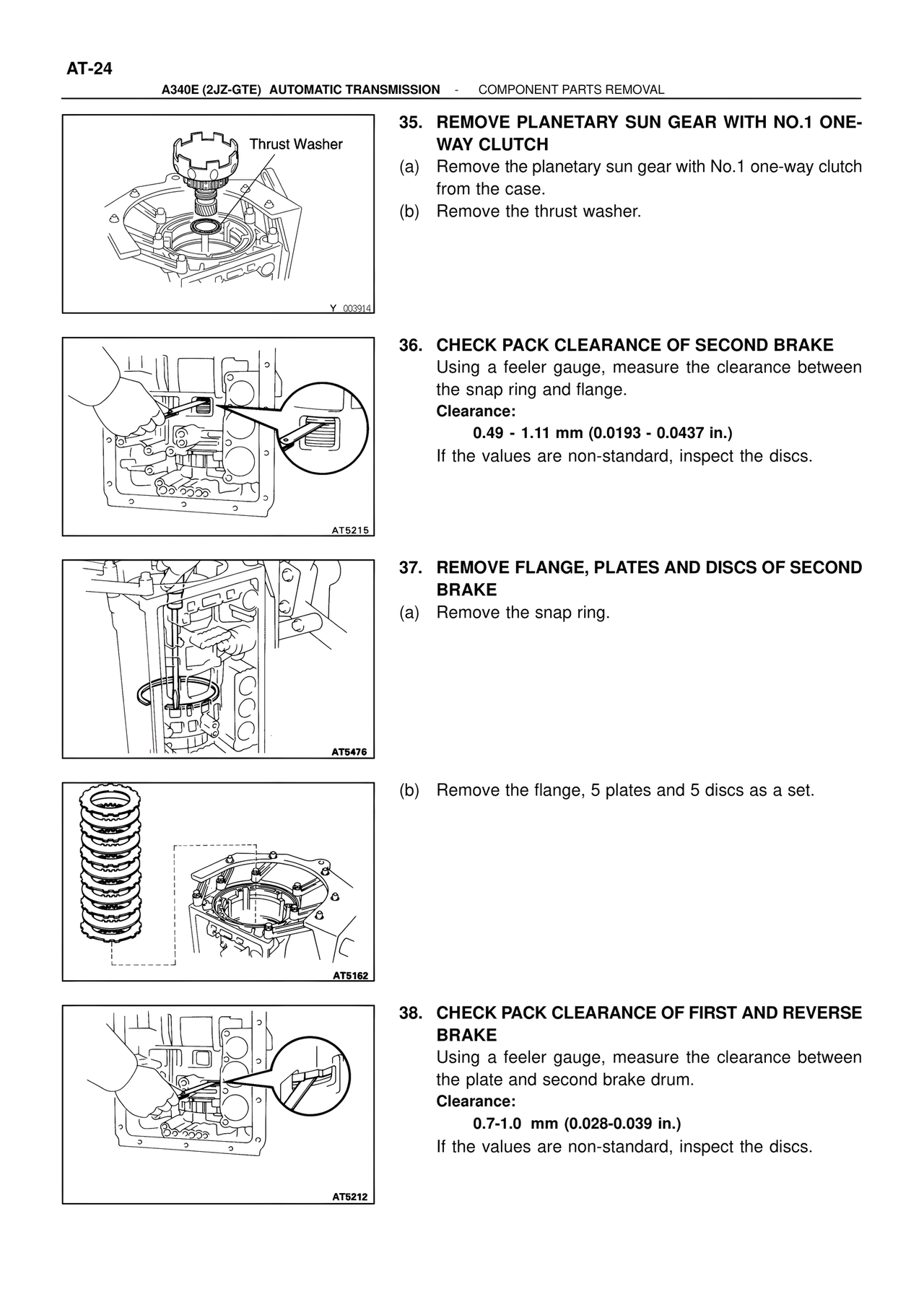 38. CHECK PACK CLEARANCE OF FIRST AND REVERSE BRAKE