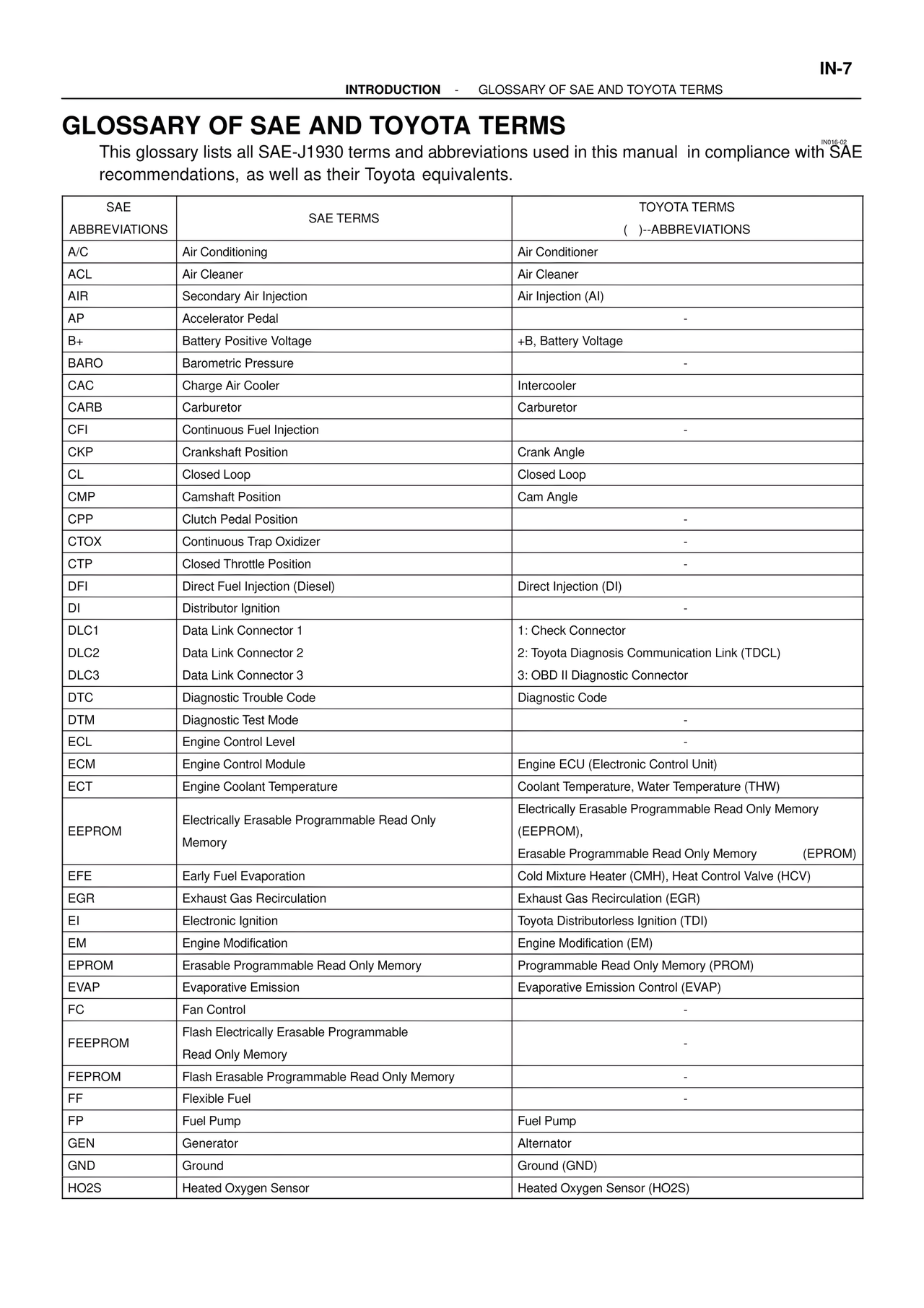 INTRODUCTION - GLOSSARY OF SAE AND TOYOTA TERMS