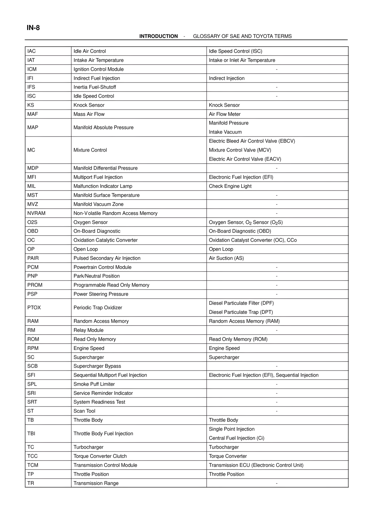 INTRODUCTION - GLOSSARY OF SAE AND TOYOTA TERMS