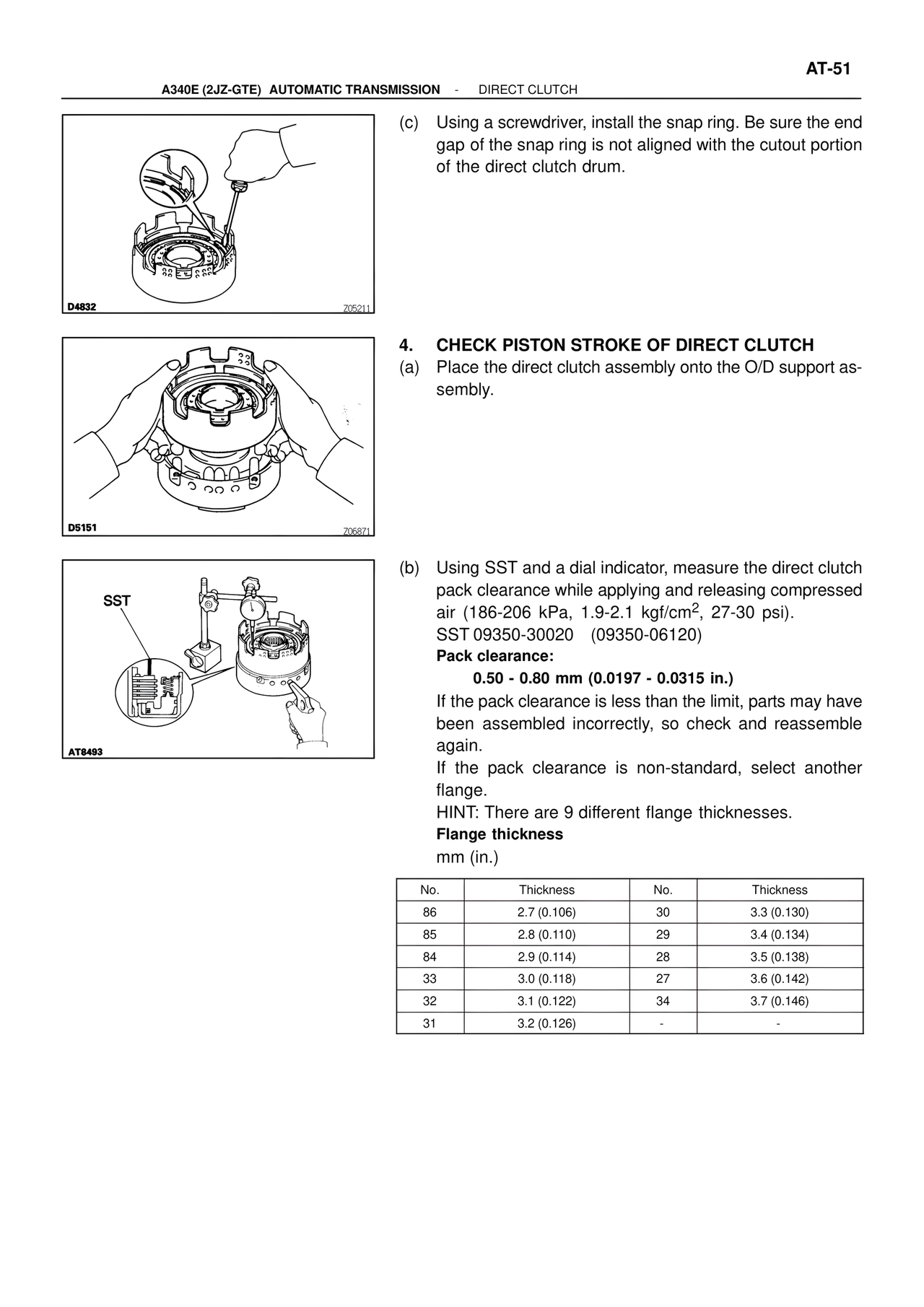 4. CHECK PISTON STROKE OF DIRECT CLUTCH