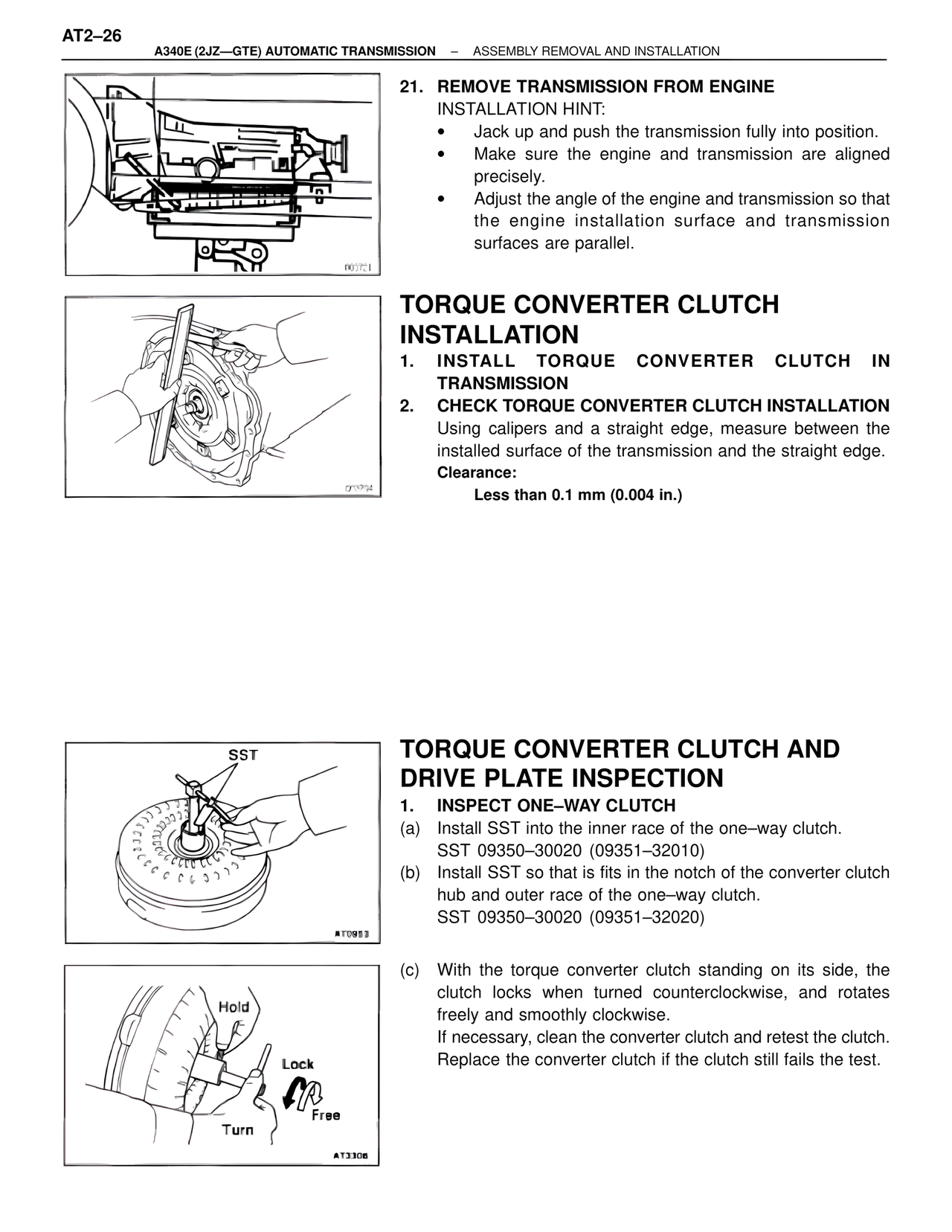 A340E (2JZ—GTE) AUTOMATIC TRANSMISSION – ASSEMBLY REMOVAL AND INSTALLATION