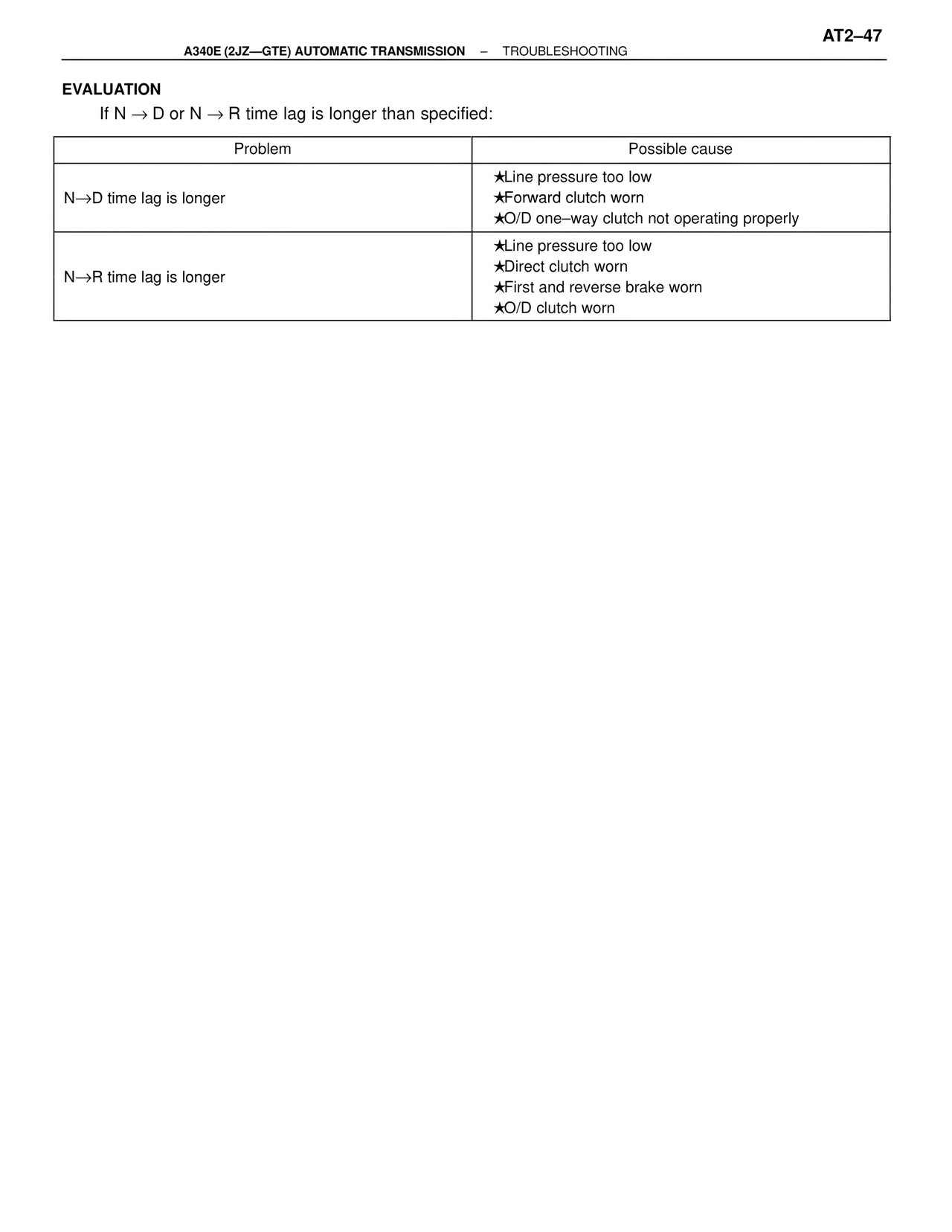 ★O/D one–way clutch not operating properly