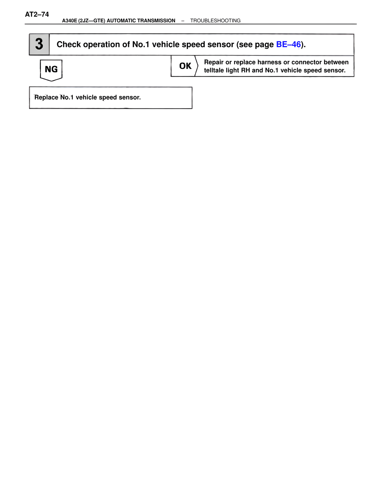 3 Check operation of No.1 vehicle speed sensor (see page BE–46).