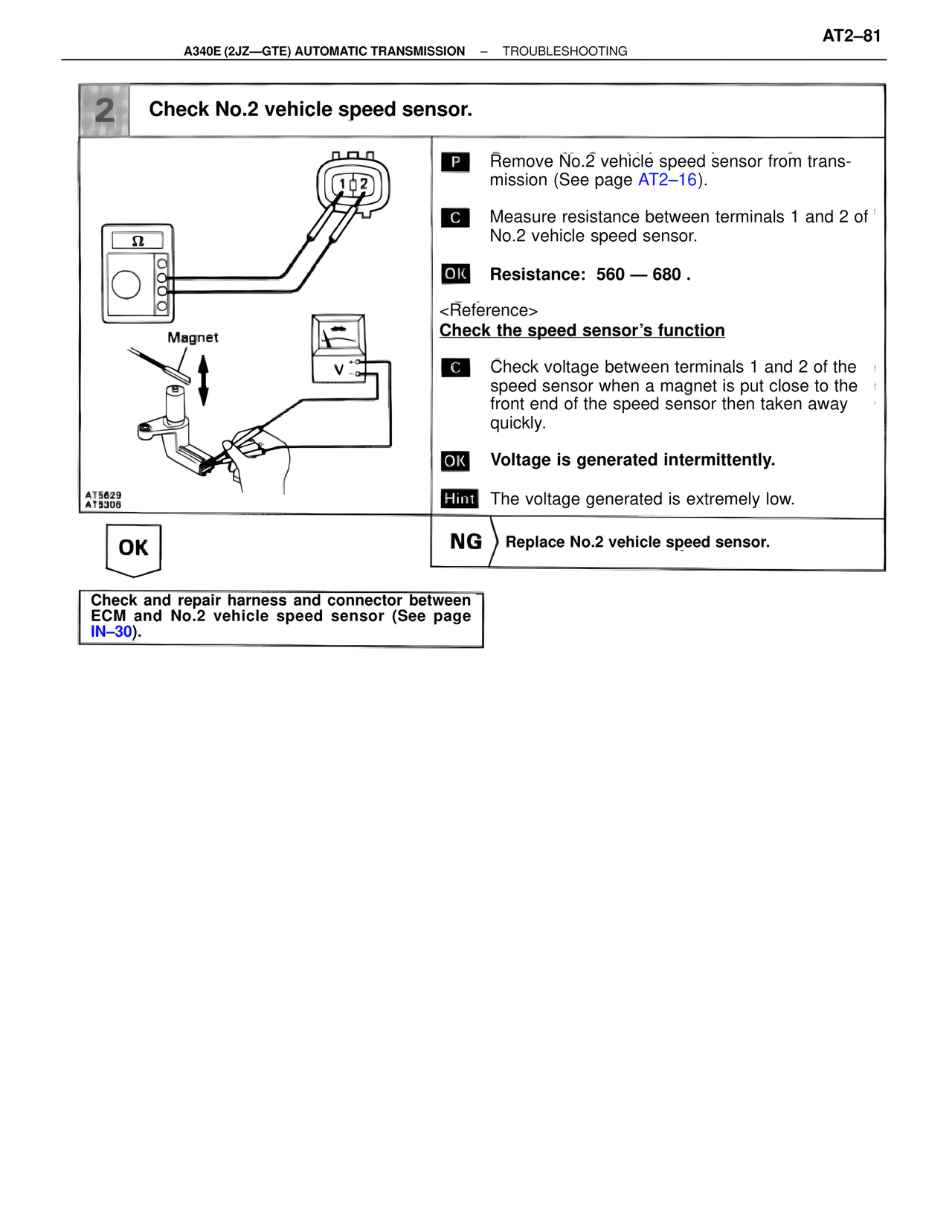 2 Check No.2 vehicle speed sensor.
