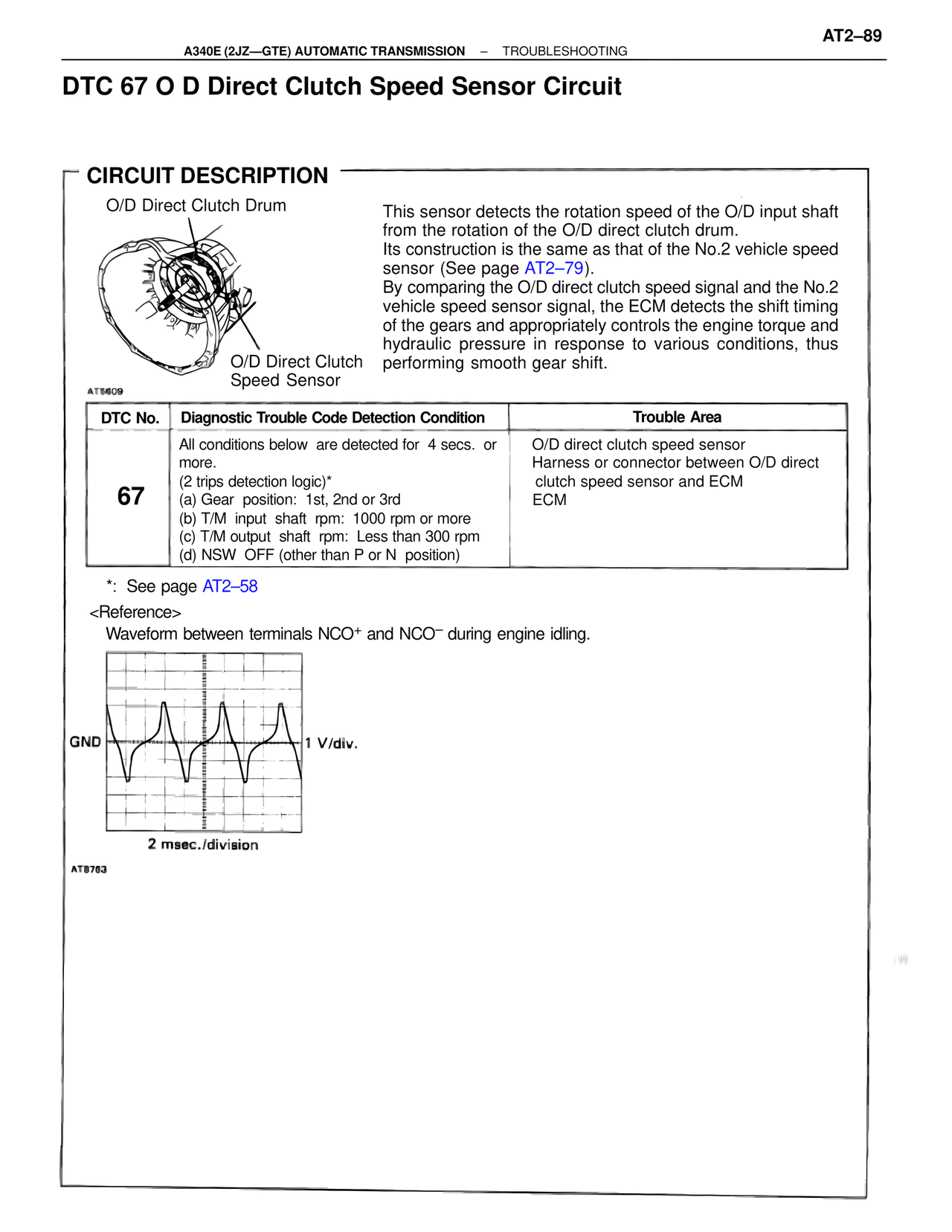 DTC 67 O D Direct Clutch Speed Sensor Circuit