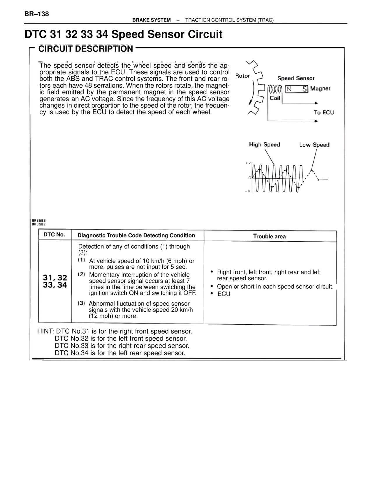 DTC 31 32 33 34 Speed Sensor Circuit