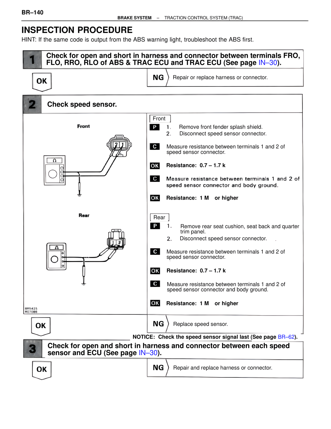 NOTICE: Check the speed sensor signal last (See page BR–62).
