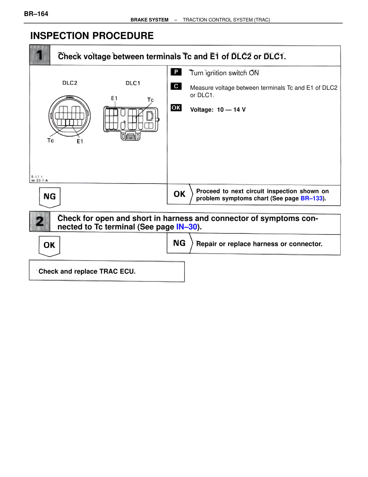 NG OK Proceed to next circuit inspection shown on problem symptoms chart (See page BR–133).