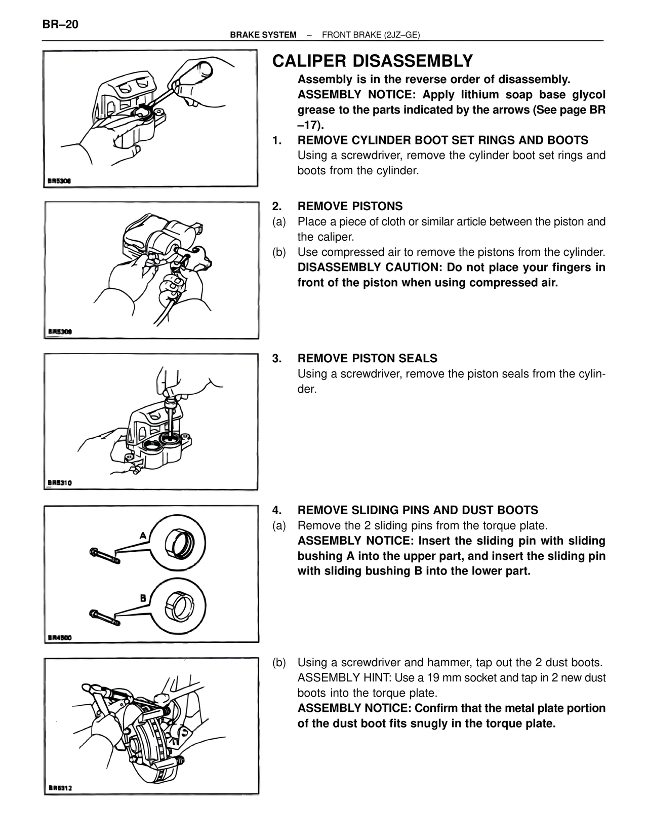 ASSEMBLY NOTICE: Confirm that the metal plate portion of the dust boot fits snugly in the torque plate.