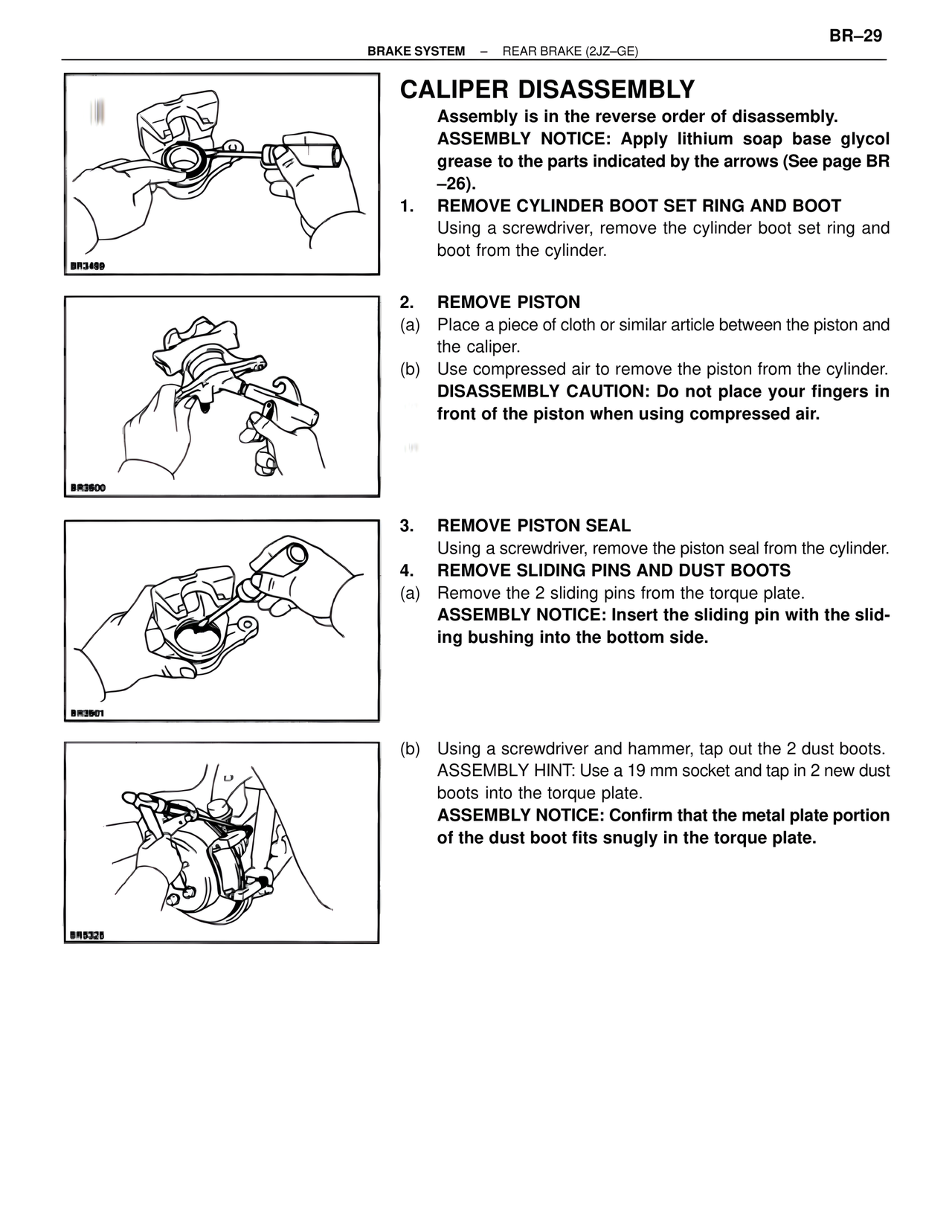 ASSEMBLY NOTICE: Confirm that the metal plate portion of the dust boot fits snugly in the torque plate.