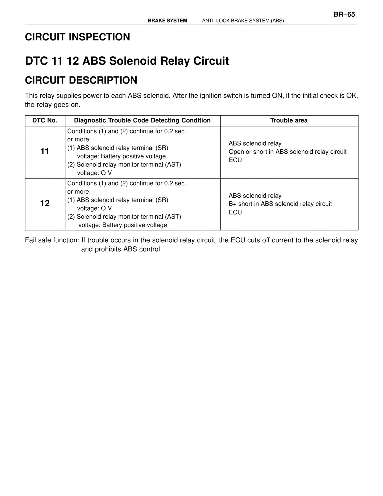 DTC 11 12 ABS Solenoid Relay Circuit