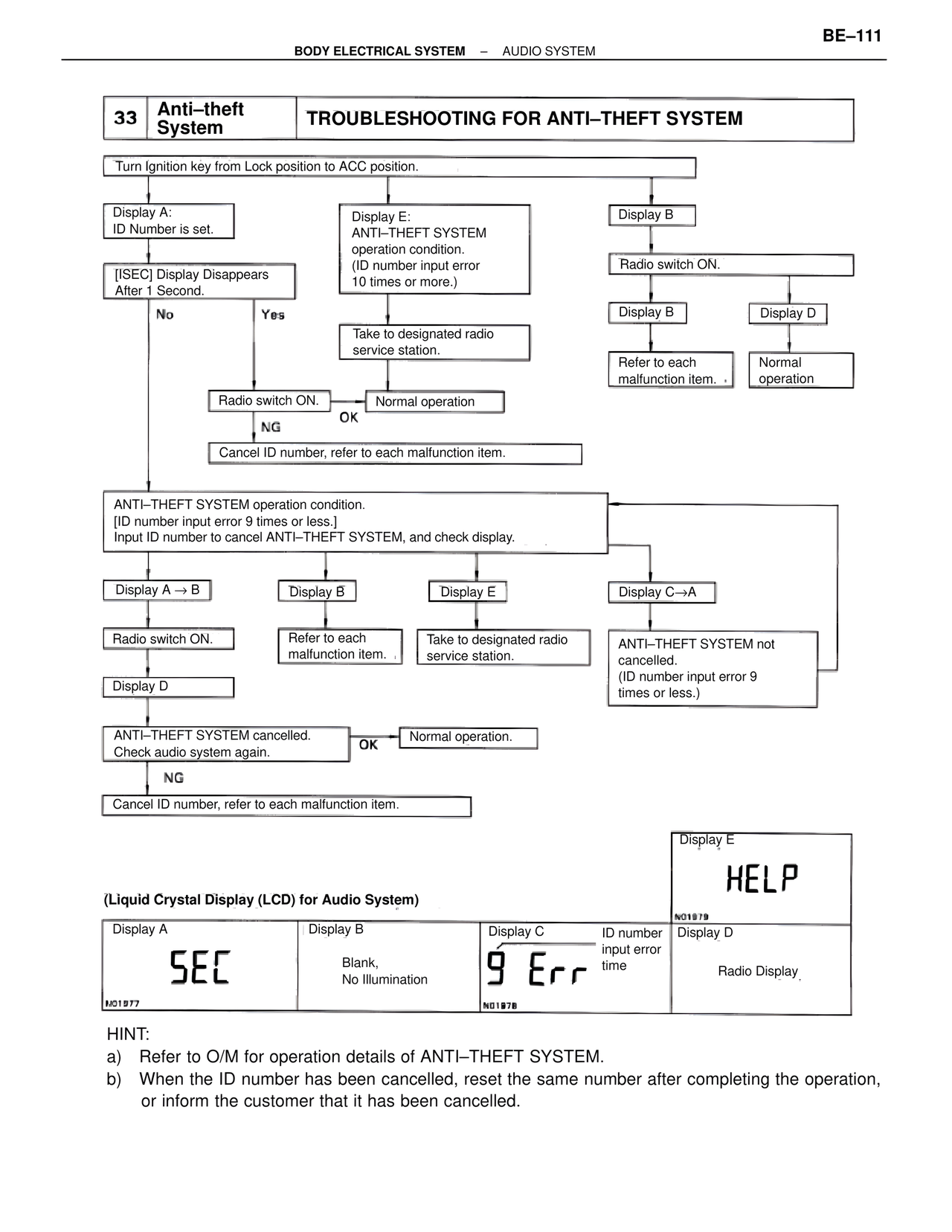 33 | Anti–theft System | TROUBLESHOOTING FOR ANTI–THEFT SYSTEM