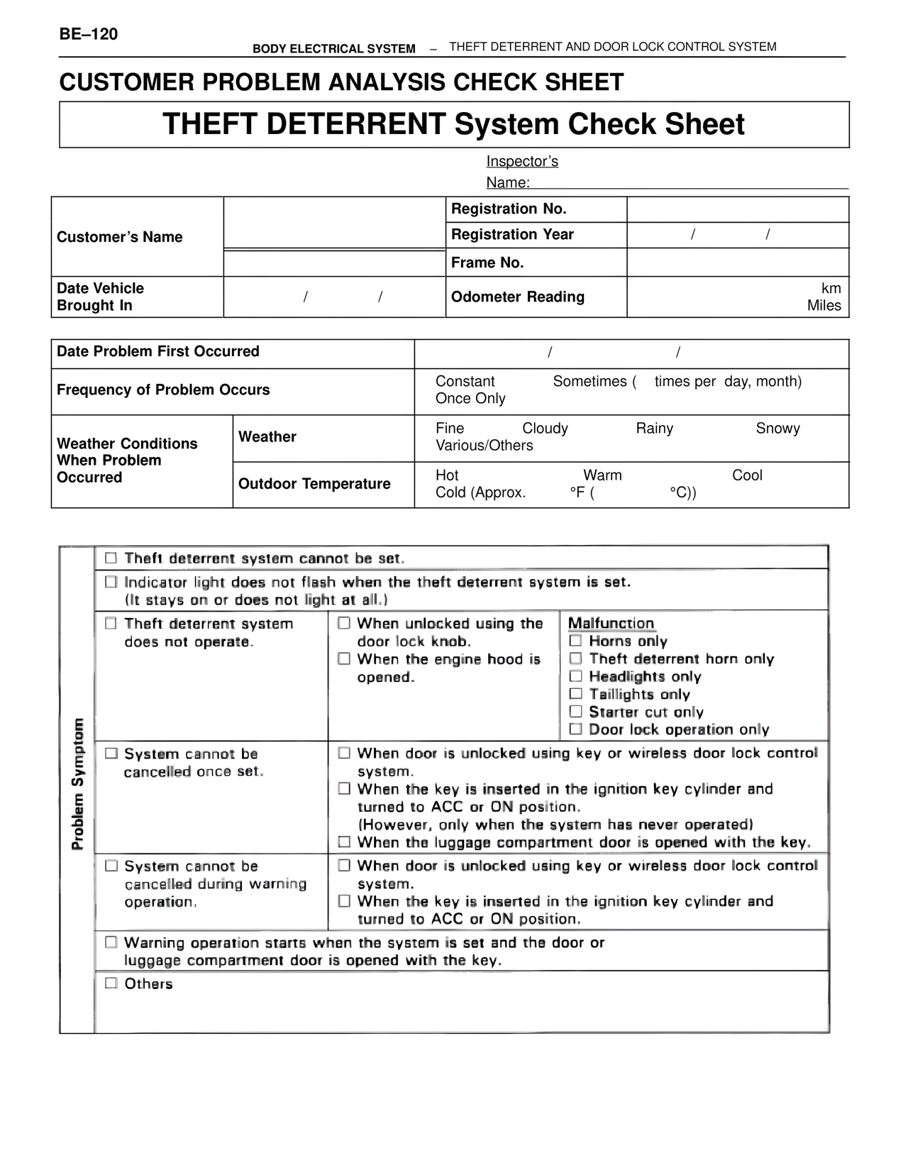 THEFT DETERRENT System Check Sheet
