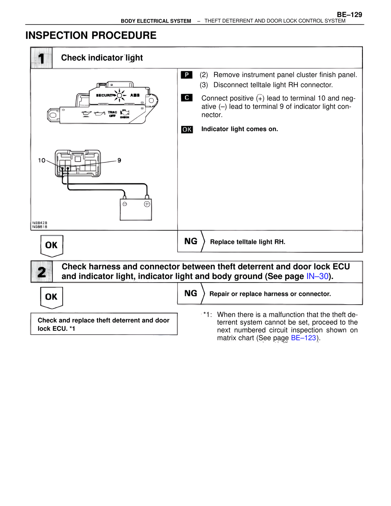 *1: When there is a malfunction that the theft deterrent system cannot be set, proceed to the next numbered circuit inspection shown on matrix chart (See page BE–123).