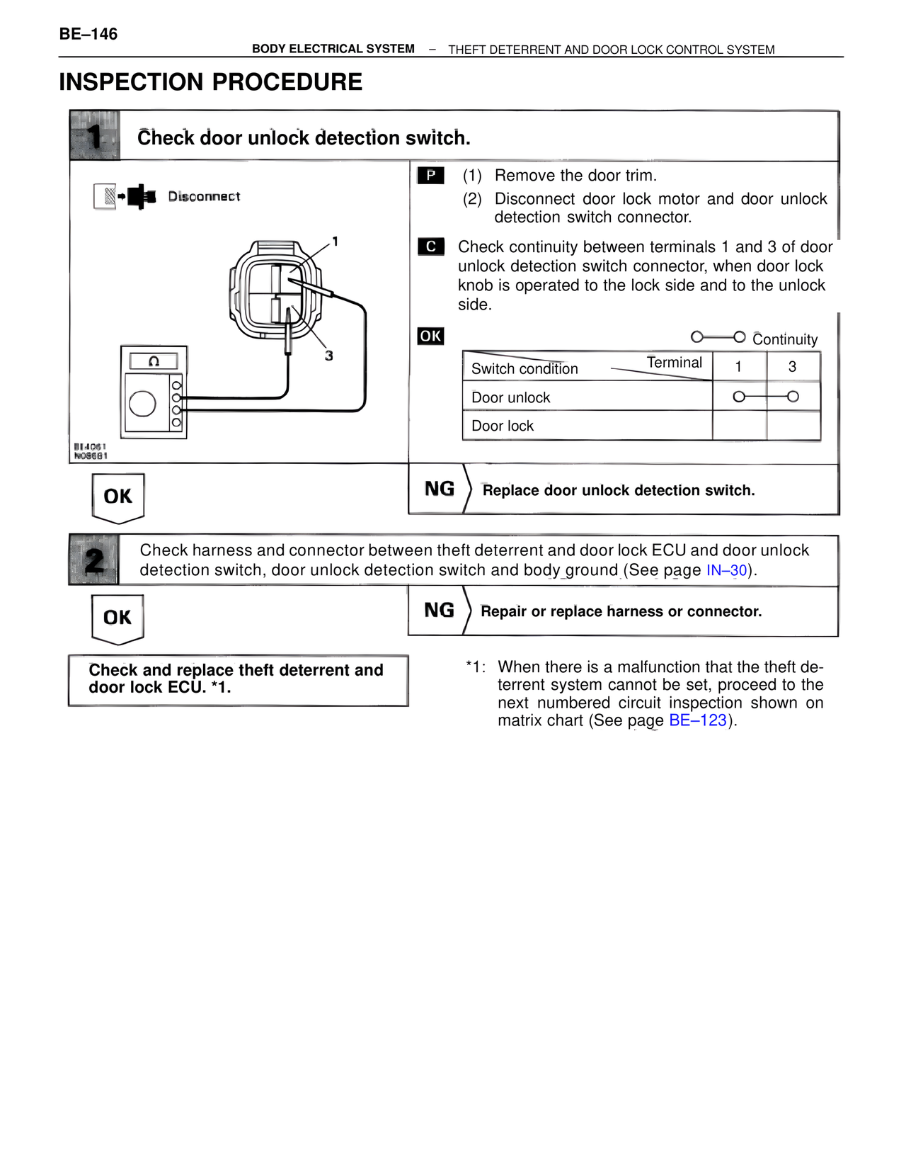 detection switch, door unlock detection switch and body ground (See page IN–30).
