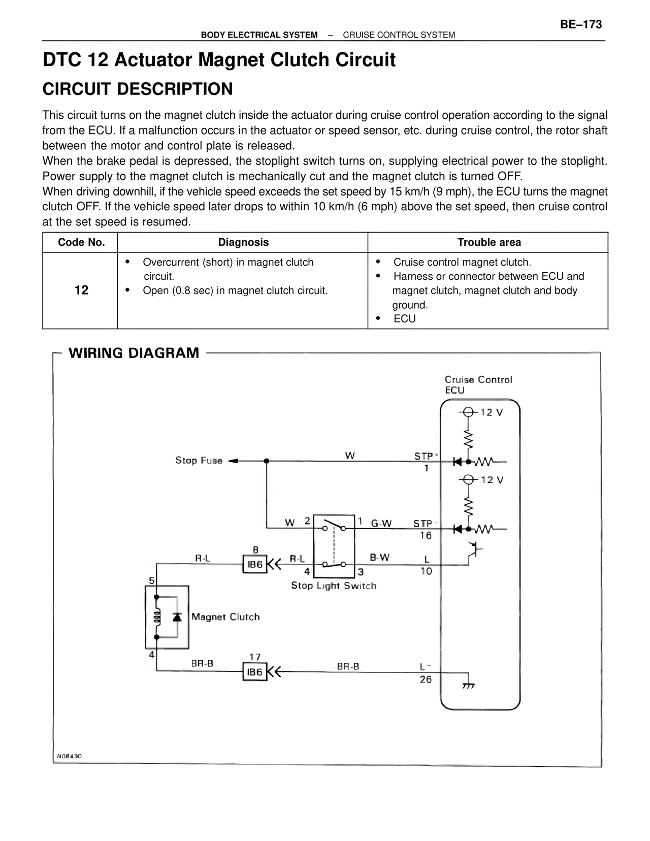 • Open (0.8 sec) in magnet clutch circuit. | • Cruise control magnet clutch.