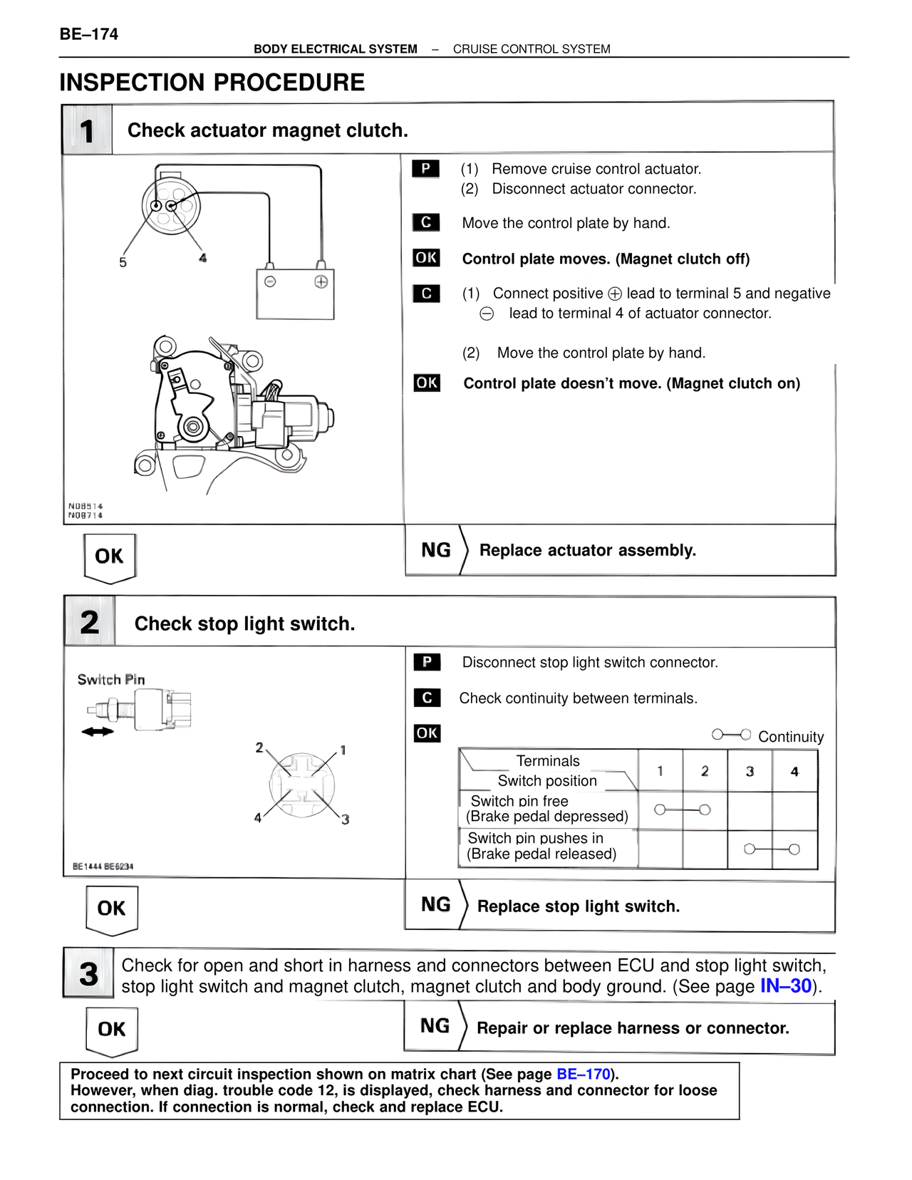 stop light switch and magnet clutch, magnet clutch and body ground. (See page IN–30).