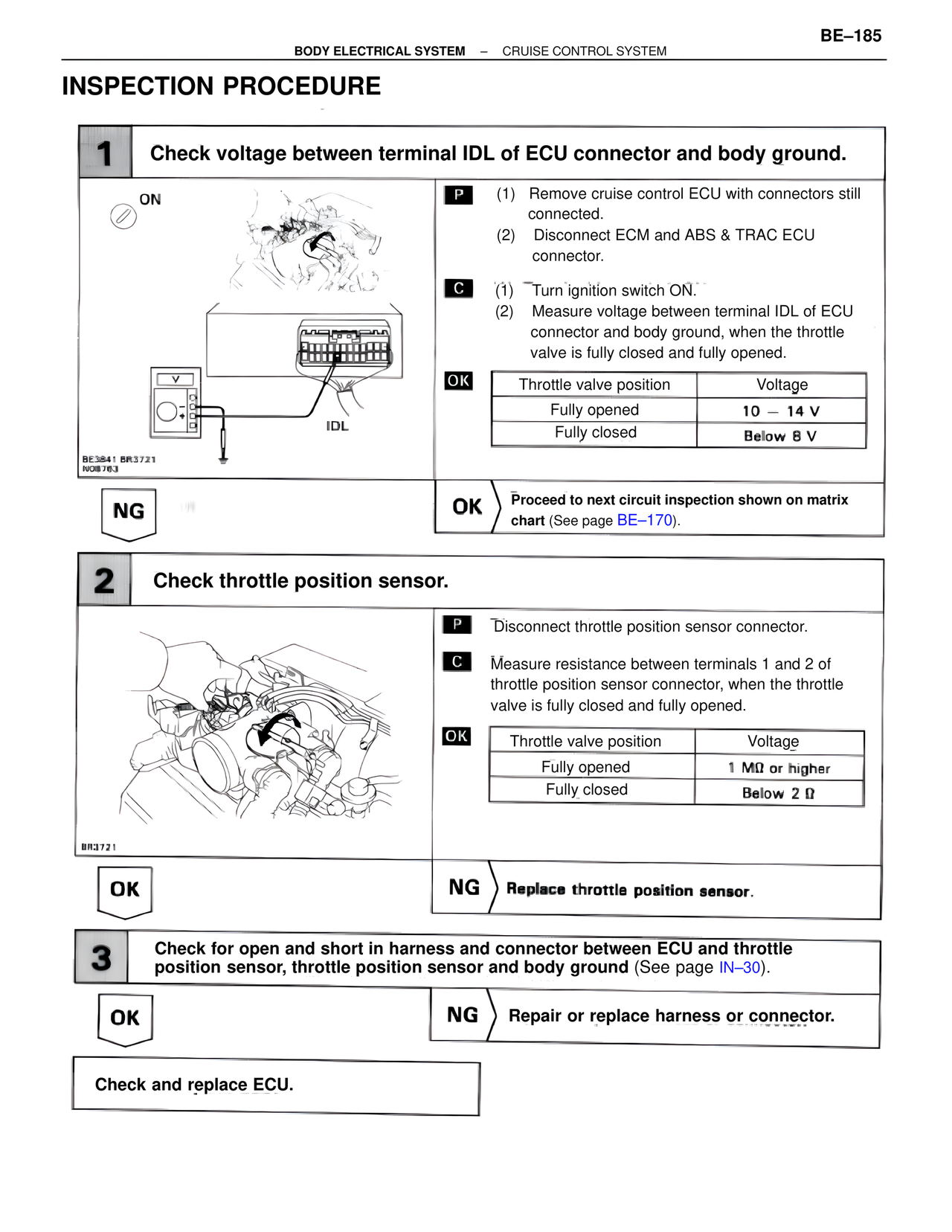 OK Proceed to next circuit inspection shown on matrix chart (See page BE–170).